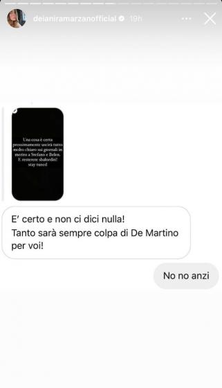 Un utente ha scritto alla Marzano che verrà come sempre data la colpa a De Martino. L’esperta gossip ha riposto con un sibillino: