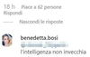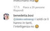 Benedetta però non si è scomposta più di tanto nonostante qualche follower non ci sia andato giù leggero. “Come puoi stare con uno che potrebbe essere tuo nonno?” è stata la domanda più ricorrente, e alla quale la ventenne con nonchalance ha replicato: “L’intelligenza non invecchia mai”. Qualcun altro invece, come era prevedibile, ha insinuato che dietro questa scelta ci fosse solo un fattore economico, ma anche in questo caso la giovane ha chiosato: “I soldi li hanno in tanti, l’intelligenza no”.
