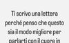 Qualsiasi sia la tua risposta sappi che ti voglio bene e sono dalla tua parte sempre, che sia insieme o da soli, sono tuo fratello. Prenditi il tempo che ti serve per rifletterci, voglio solo il meglio per te e per noi, qualsiasi cosa significhi. A volte bisogna scappare da se stessi per ritrovarsi. A volte bisogna distruggere se stessi per ricostruirsi. Più di prima, meglio di prima. Con amore, Ben.