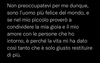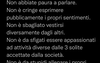 Non preoccupatevi per me dunque, sono l’uomo più felice del mondo, e se nel mio piccolo proverò a condividere la mia gioia e il mio amore con le persone che ho intorno, è perché la vita mi ha dato così tanto che è solo giusto restituire di più. Non abbiate paura a parlare. Non è cringe esprimere pubblicamente i propri sentimenti. Non è sbagliato vestirsi diversamente dagli altri. Non è da sfigati essere appassionati ad attività diverse dalle 3 solite accettate dalla società. Non è da stupidi allenare i propri muscoli. Non è essere pazzi avere una visione e credere in un sogno. Non è essere “puttane” avere confidenza nel proprio corpo ed essere sexy. Non è innaturale avere un orientamento sessuale diverso, come non bisogna vergognarsi di dire a un amico o un fratello TI AMO senza per forza esserne attratti sessualmente. Sono stato chiamato “pazzo”, “drogato”, “scoppiato” e mille altre cose nelle ultime 24 ore, ma non mi sono mai offeso. Anzi, li prendo come complimenti. Perché sono diverso, Perché sono vivo.