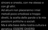 Ho deciso di essere più sincero e onesto con me stesso, con me stesso e con gli altri. Ad alcuni non piaceranno i miei metodi poco ortodossi e troppo diretti, la scelta delle parole o le mie posizioni politiche o sociali. Ma è alla base della nostra cultura e genetica: essere diversi. Dai 5 ai 18 anni ci chiudono in una stanza e legano a un banco dicendo: “devi dire questo, devi pensare questo, devi scrivere questo. Se lo fai con precisione ti do un premio, un bel voto”. A scuola essere “diverso” non significa essere speciale, significa essere cibo per i bulli. Ma proprio come una specie ha bisogno di diversità a livello genetico per sopravvivere, allo stesso modo ne ha bisogno una società. Persone diverse con pensieri diversi che si uniscono con rispetto per trovare soluzioni nuove a problemi attuali. Per fare un’armonia musicale ci vogliono più note: “do re mi fa sol la si”. Non dobbiamo essere tutti “re”, o tutti “mi” o tutti “fa”, sennò l’armonia non esiste. E se al “do” sta sul cazzo quando suono il “re”, è una mancanza sua, non mia.