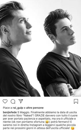 Finalmente delle belle notizie per tutti i fan di Benji e Fede! Dopo l’inevitabile e triste conferma che l’ultimo concerto in programma il prossimo 3 maggio all’Arena di Verona è stato rimandato, il gruppo musicale modenese ha reso nota la data (inizialmente posticipata a causa del Coronavirus) in cui uscirà finalmente il loro secondo libro: “5 Maggio. Finalmente abbiamo la data di uscita del nostro libro Naked! GRAZIE davvero con tutto il cuore per aver portato pazienza e aspettato, ma ora è ufficiale e niente (ok non portiamo sfortuna) potrà fermarci”.