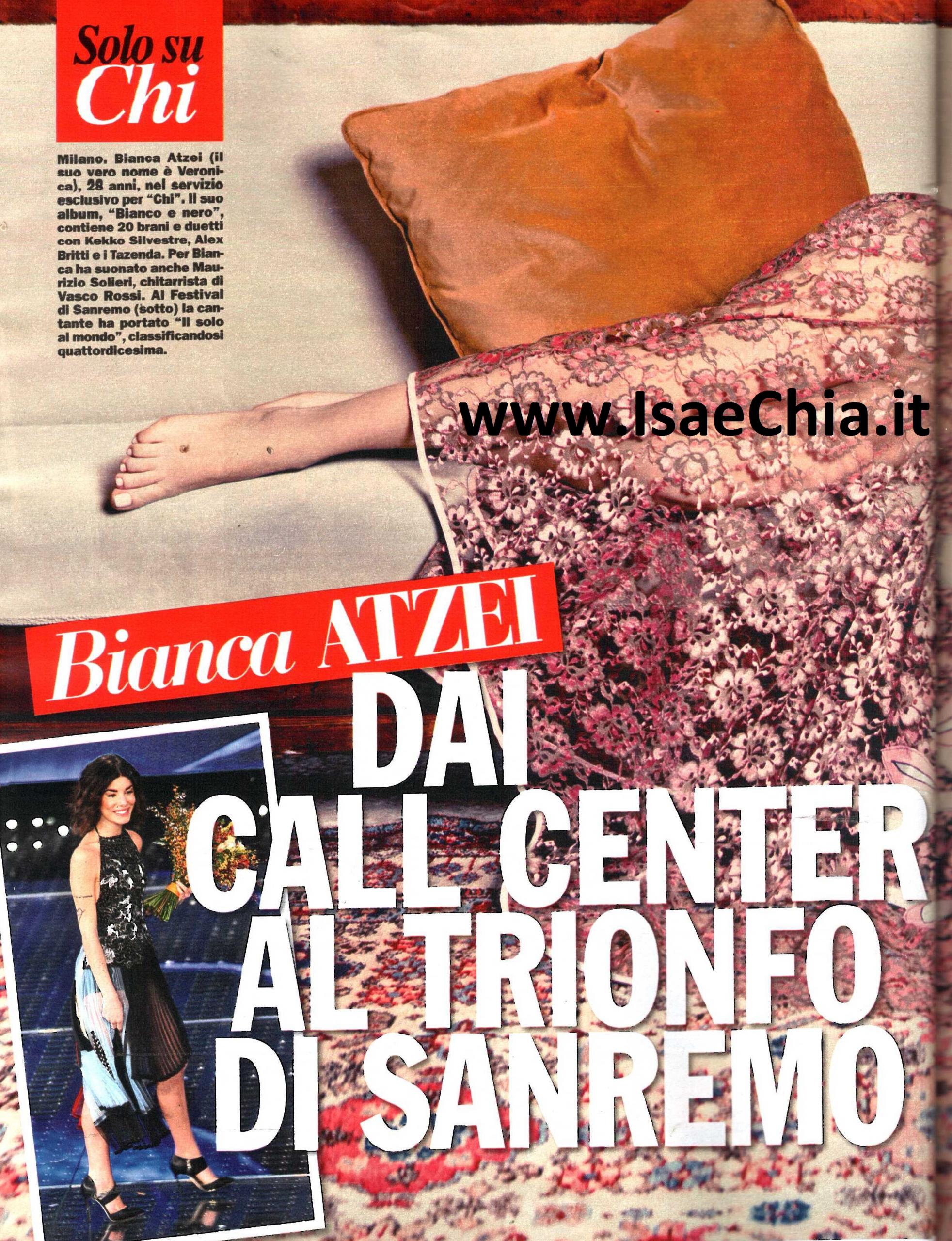 Lo scorso sabato è stata ospite ad Amici Bianca Atzei, la cantante di origini sarde che ha stregato il Festival di Sanremo con la sua voce potente e il fisico minuto. La cantante 27enne racconta la sua storia: “Fin da piccola ho sognato di fare la cantante. Ho iniziato studiando lirica, poi ho bussato alle porte del pop e in mezzo c’è un oceano di strade sbarrate. Papà muratore, mamma che cura gli anziani, sono figlia unica e sono cresciuta con la solitudine per amica, la mia forza è stata la musica, ma la strada è stata lunga e faticosa. Non ho mollato: la mattina a scuola, la sera a lavoro in un call center e in seguito in un negozio di cellulari. Ogni tanto ripasso davanti a quel call center. Tiro un respiro di sollievo e continuo per la mia strada. Poi, mi sono ammalata e ho dovuto fermarmi. Qualcosa di non calcolato, non voglio entrare nei dettagli. Ho interrotto studi e lavoro, dovevo rimanere a letto, ma la musica è sempre stata con me. Oggi il male è sotto controllo, per fortuna” rivela lei. Poi continua: “La speranza si è riaccesa quando ho iniziato a stare meglio. Ho prestato la mia voce a tante pubblicità, ho partecipato a CD Live e come corista a Domenica Live. Poi sono arrivati gli incontri che hanno cambiato la mia vita: devo ringraziare il produttore Diego Calvetti, il patron di RTL 102,5 Lorenzo Suraci e Kekko Silvestre dei Modà. Quando ho incontrato Calvetti, mi ha chiesto: ‘Hai un altro nome da affiancare al tuo cognome così particolare?’, così ho risposto d’istinto Bianca, simbolo di purezza” racconta lei, che in realtà si chiama Veronica. E poi, Sanremo: “Prima di salire su quel palco ho preso due porte in faccia, a Sanremo Giovani prima e in coppia con Alex Britti l’anno scorso. E nemmeno conto i vari X Factor. Ma prima o poi la ruota doveva girare. Prima di Sanremo ho avuto la fortuna di duettare con Gianni Morandi all’Arena di Verona e con Anna Tatangelo, ho aperto i concerti dei Modà e il video di La gelosia, con Kekko Silvestre, ha raggiunto 5 milioni di visualizzazioni. Poi il mio primo singolo, La paura che ho di perderti, ha raggiunto i 6 milioni. Se tutto dovesse finire? Beh, canterò a casa, pensando che dal call center, ho quasi toccato il cielo con…la voce!“
