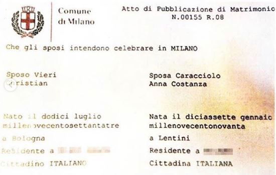 Bobo Vieri e Costanza Caracciolo presto sposi: le pubblicazioni delle nozze
