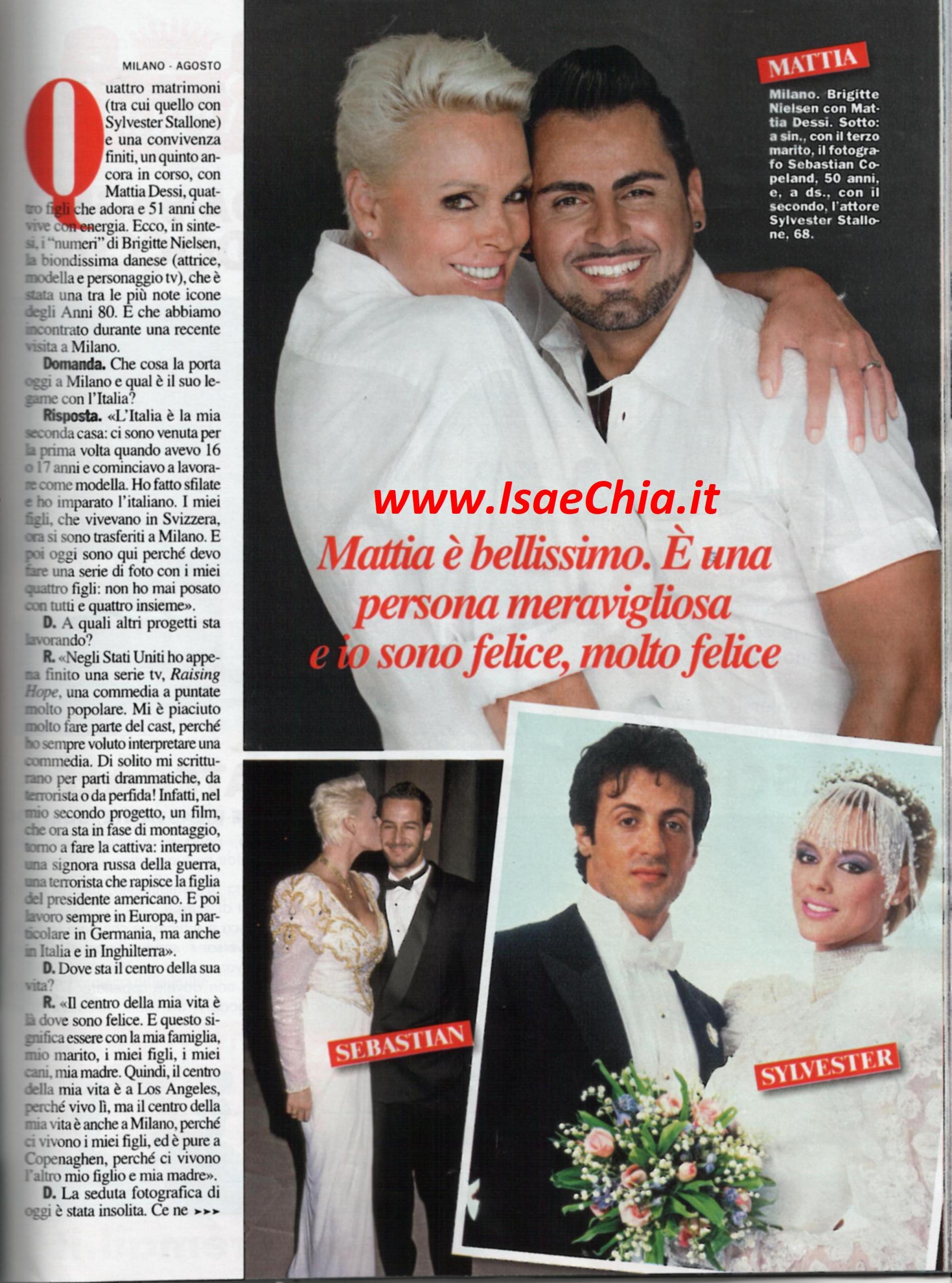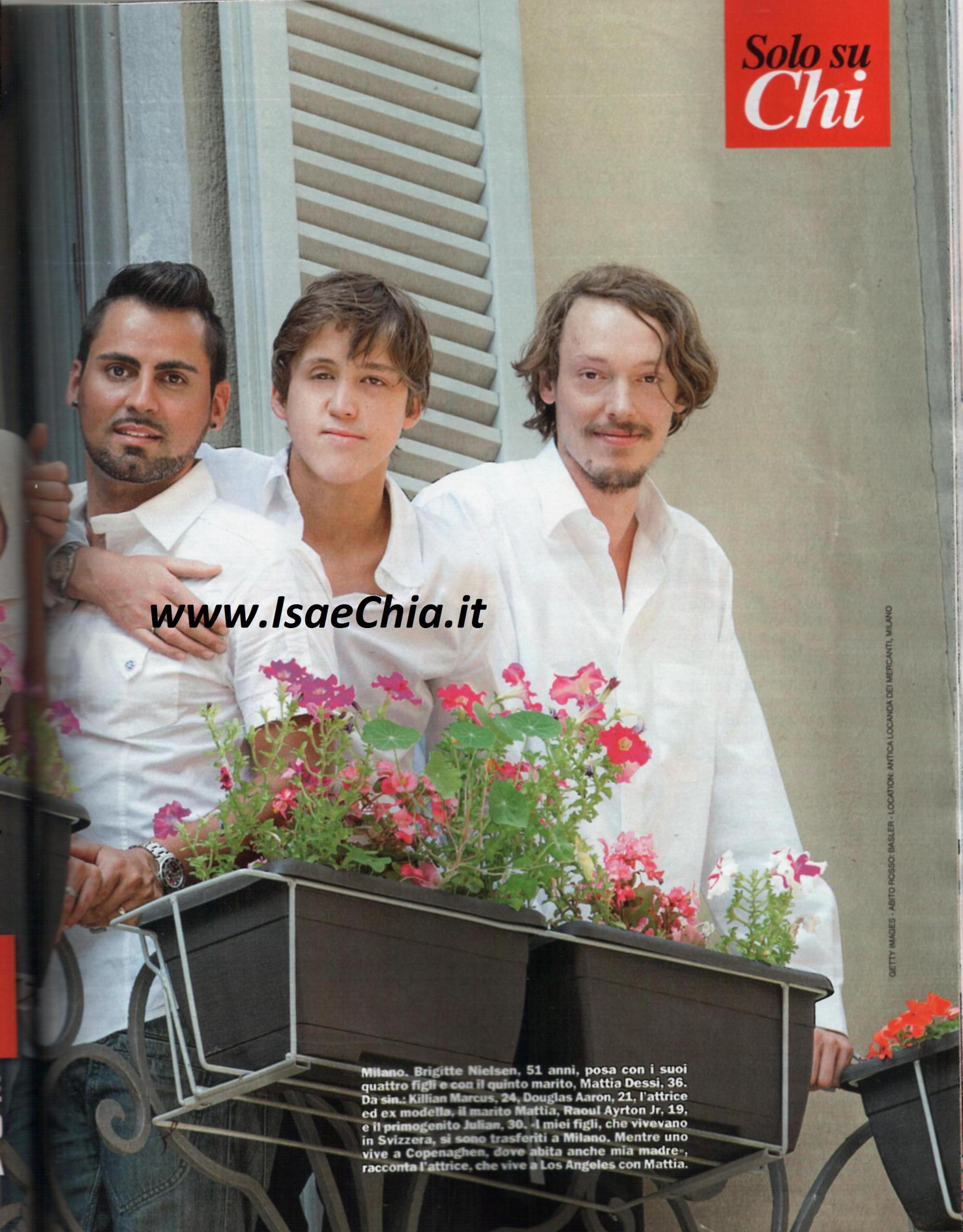 Brigitte Nielsen, una delle icone degli anni ’80 e anni ’90, vive attualmente a Los Angeles, ma è tornata a Milano per un servizio con i suoi quattro figli, uno dei quali vive a Copenhagen: “L’Italia è la mia seconda casa, ci sono venuta per la prima volta a 16 o 17 anni, ho fatto sfilate e imparato l’italiano; anche i miei figli dalla Svizzera si sono trasferiti a Milano. Negli Stati Uniti ho appena finito Raising hope, una serie molto popolare; mi è piaciuto recitare in una commedia, perché di solito mi danno ruoli da cattiva! Infatti nel film ora in montaggio interpreto una signora russa della guerra. Il centro della mia vita è dove sono felice, quindi a Los Angeles, dove vivo ora, ma è anche a Milano dai miei figli, e a Copenhagen, dove vivono l’altro mio figlio e mia madre”. Infatti per lei è la prima volta che posa con tutti i figli insieme: “E’ stata la seduta fotografica più emozionante e stancante che abbia fatto. Nessuno di loro ha mai posato davanti a un obiettivo, ma tutto è andato benissimo, abbiamo riso tanto. Mi sento emozionata perché a 51 anni per la prima volta potrò avere una foto incorniciata mia e dei miei quattro figli. Per le donne, soprattutto quelle che lavorano nel mondo dello spettacolo, i 50 anni non sono un’età molto affascinante. Si avvicinano i 60 e ci si sente vecchia, ma io sono positiva e mi sento soddisfatta di me stessa, sono matura, amo la vita, so quello che voglio. E soprattutto, mio marito, che ha 15 anni meno di me, mi ama così come sono. Il legame che ho con i miei figli è molto bello. Sono certa che qualsiasi madre e qualsiasi padre che abbiano vissuto un divorzio, sappiano quanto possa essere duro per un figlio. E’ difficile mantenere lo stesso rapporto e delle regole. Anche per noi non è stato facile, perché io ora vivo dall’altra parte del mondo, ma quando ci vediamo è come se non ci vedessimo dal giorno prima. Per loro non è stato facile avere come madre Brigitte Nielsen, però in alcuni momenti penso che sia stato molto comodo! Penso che non sia facile avere una madre famosa, soprattutto quando sui giornali esce “Ha fatto questo e quello” o quando le cose non vanno bene. I compagni di scuola dicono: “Tua mamma ha fatto questo!” e in quei momenti è importante parlare e far capire che quelle sono esagerazioni. Però voglio anche dire: “Ecco, qui la mamma ha sbagliato”. Julian, il più grande, ha 30 anni e fa il musicista. Da sempre ho detto loro: “Se volete entrare nel mondo dello spettacolo, vi sosterrò” ma occorre tanto lavoro. Suo padre, Kasper Winding, è un importante musicista. Julian sta iniziando solo ora ad avere successo, ma ha iniziato a suonare a 14 anni. Uno era bravissimo a scuola, l’altro no, un altro voleva fare sport, Killian ha il 50 di piede e non trova le scarpe adatte: quattro figli sono tanti e c’è sempre qualcosa da fare! Avrei voluto una figlia femmina, ma forse il mio destino era essere una regina in mezzo ai suoi ragazzi” scherza lei. Quando le si chiede com’è il rapporto tra i suoi figli e il suo quinto marito, Mattia Dessi, risponde: “Abbiamo festeggiato dieci anni d’amore e dieci anni fa lui ha creato con loro un rapporto molto sano: non ha preteso di fare il padre, anche perché non lo è. I ragazzi sono innamorati di lui perché è un amico e lo rispettano. Sono entrati in confidenza con lui, anche perché sanno quanto mi ama e quanto io ami lui. Il fatto che anche lui sia nelle foto è un miracolo, perché anche lui non ha mai voluto: è un giorno da ricordare perché ci sono tutti. Nelle foto è bellissimo, ma lui lo è sempre”. Infine, le si chiede cosa si prova ad essere citata da Lady Gaga, che in una sua canzone dice ‘Amo i capelli di Brigitte Nielsen’: “Amo molto Lady Gaga. Se qualcuno è un’icona, lei lo è. L’idea che possa aver pensato ai miei capelli, mi lusinga ed entusiasma. Le mando tanti baci, sperando che possa produrre per anni tanta bella musica”.