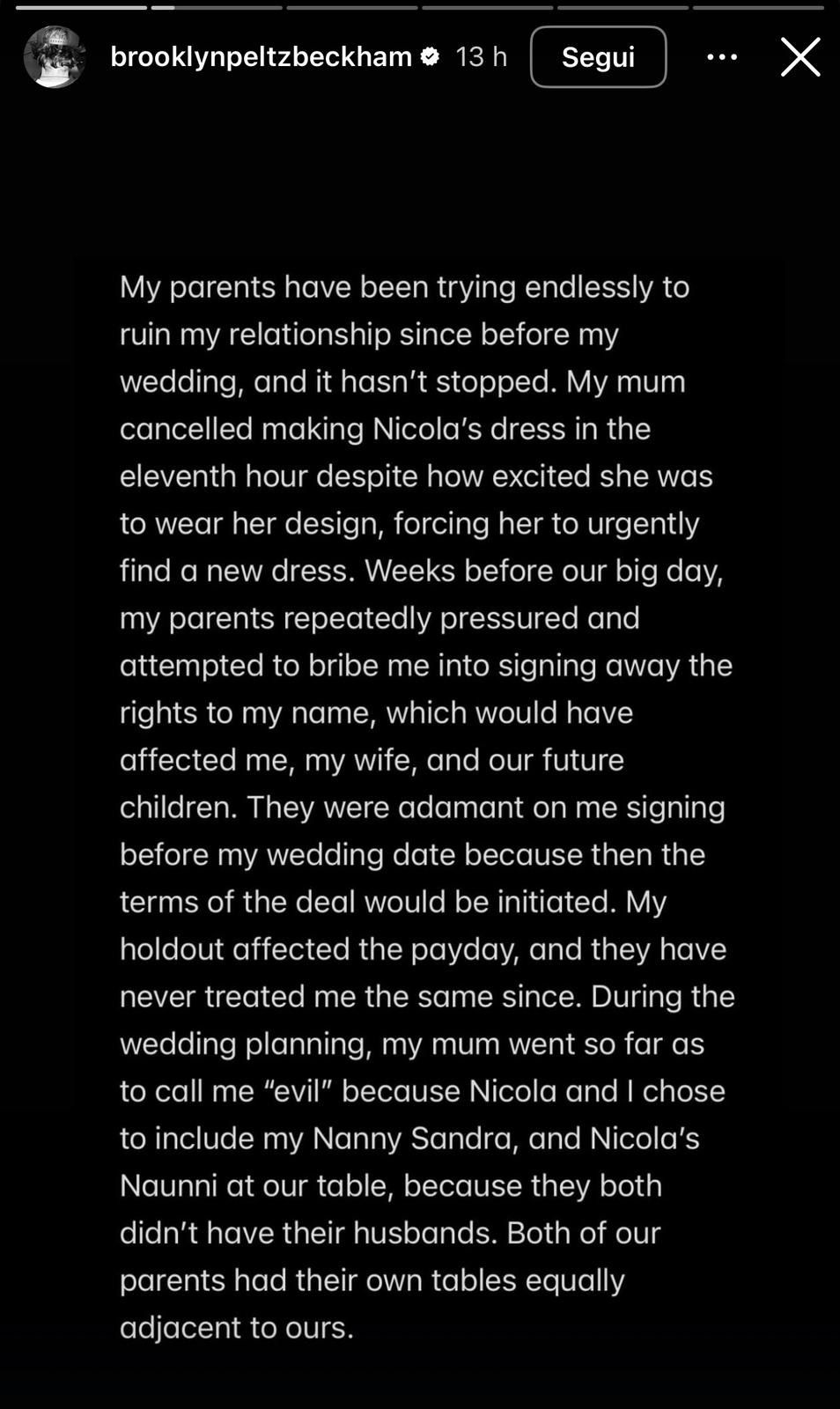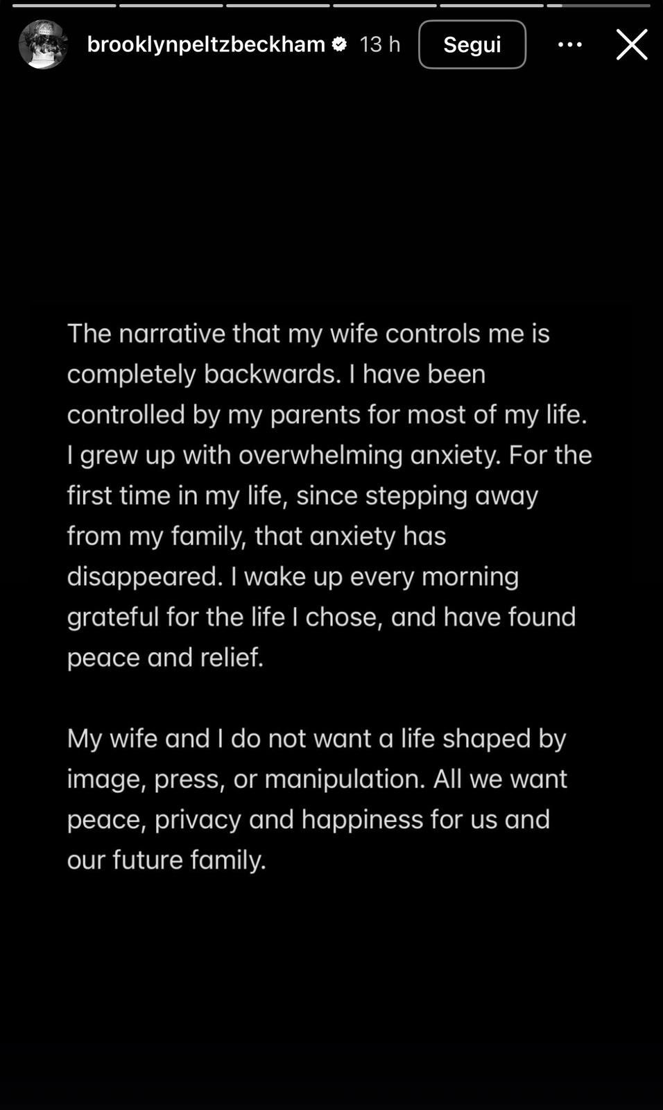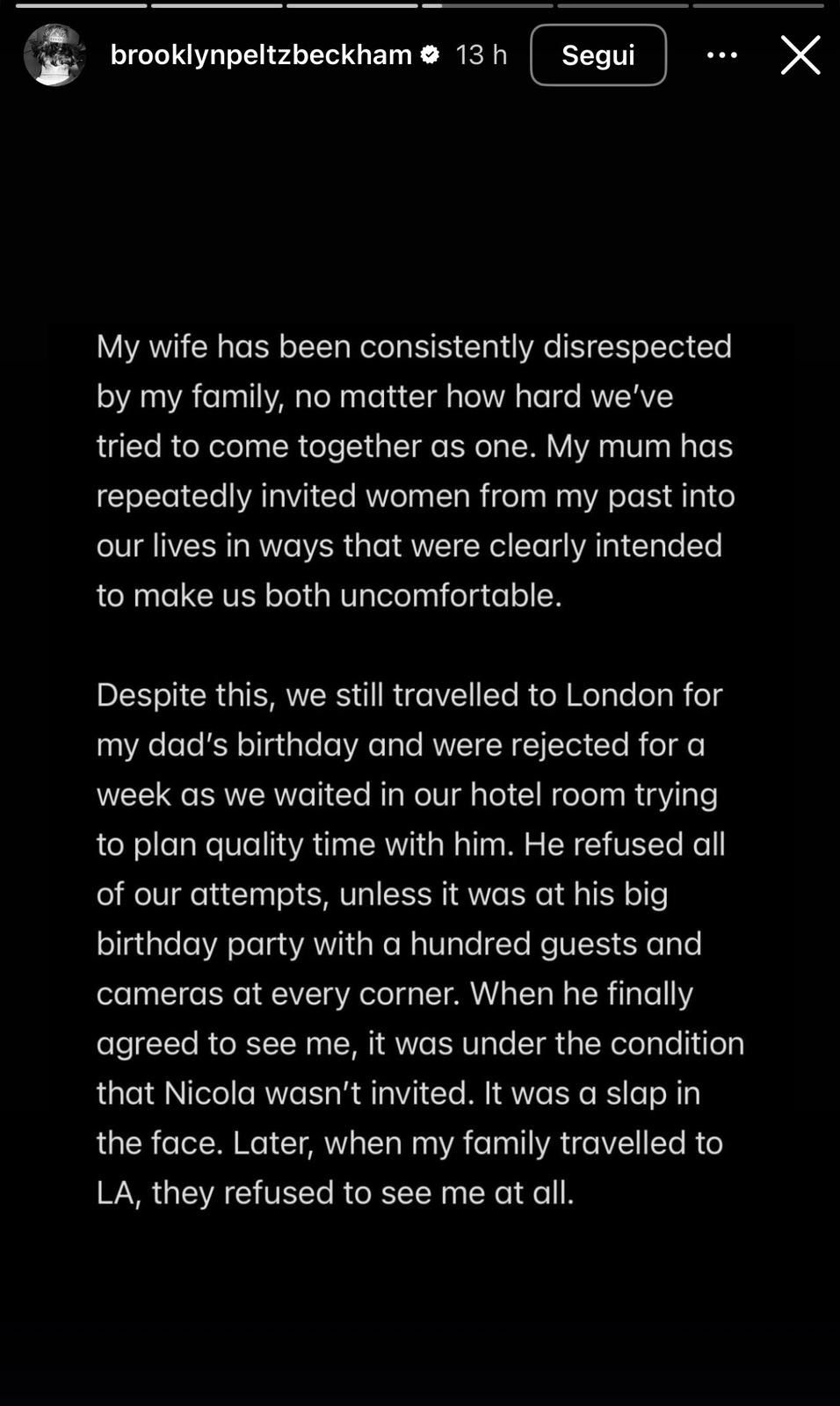 Dopo un mese da queste dichiarazioni, Brooklyn ha deciso di rompere il silenzio e raccontare la sua versione dei fatti in merito a ciò che è accaduto con la sua famiglia, attraverso un lungo sfogo pubblicando nelle sue storie Instagram: