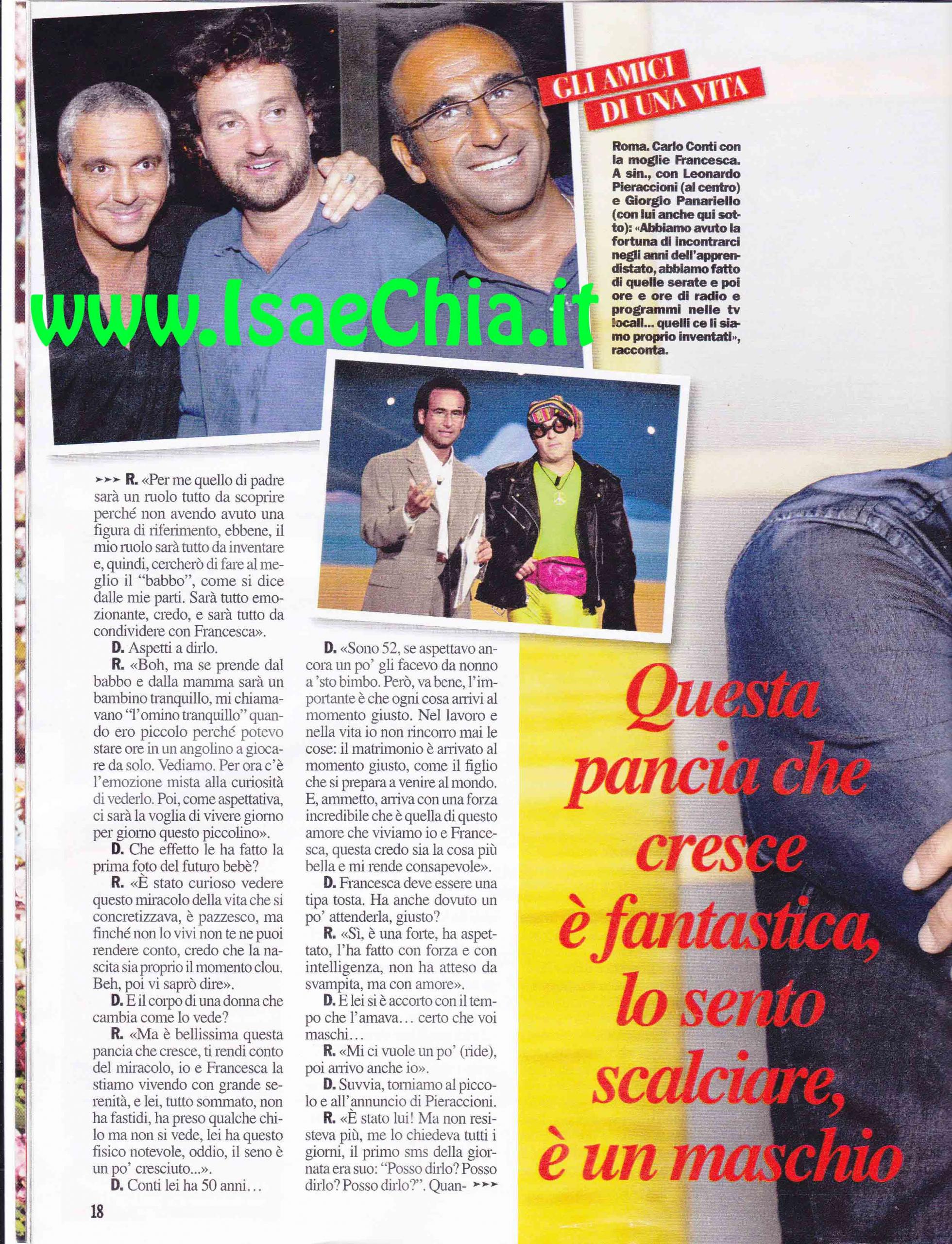 Il conduttore Carlo Conti arriva in libreria con Cosa resterà dei migliori anni (Piccolo dizionario della memoria) in cui racconta la sua vita: “Con la mia mamma, finché se n’è andata nel 2002, ho avuto un rapporto molto stretto. Era una donna fortissima che mi ha reso quello che sono oggi. Mio padre è morto quando avevo 18 mesi, così lei si è rimboccata le maniche e mi ha tirato su, insegnandomi l’onestà e il rispetto. Io, Giorgio Panariello e Leonardo Pieraccioni abbiamo avuto la fortuna di conoscerci e crescere facendo serate insieme, ore e ore di radio e programmi nelle tv locali. L’obiettivo di mia mamma era farmi prendere il diploma e io ho preso quello di ragioneria: ho lavorato in banca e non può immaginare la felicità di mia mamma quando vinsi quel concorso! Adesso tocca a me diventare padre: sarà un ruolo tutto da scoprire non avendo avuto una figura di riferimento. Se prende dalla mamma e dal babbo sarà un omino tranquillo. Io e mia moglie Francesca stiamo vivendo la gravidanza con serenità: è stato meraviglioso vedere la sua pancia crescere e la prima “foto” di nostro figlio. Ho 52 anni, se aspettavo un altro po’, gli facevo da nonno a sto bimbo! Però va bene, l’importante è che ogni cosa arrivi al momento giusto. Non ho mai rincorso le cose: il matrimonio è arrivato al momento giusto, così come il figlio. Francesca è una forte, ha aspettato e l’ha fatto con amore e intelligenza”. Poi, dopo aver ricordato momenti trascorsi con Panariello e Pieraccioni, conclude: “Se Dio lo vorrà, bisserò. Se mio figlio a 20 anni vorrà fare tv, lo lascerò libero. Non lo aiuterò a realizzarlo, ma gli insegnerò a fare come ha fatto il suo babbo: tutto da solo!”