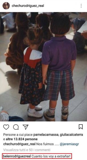 “Insieme… felici e più forti che mai!“, ha scritto su Instagram il ragazzo, pubblicando una dolcissima foto da bambino insieme alla sua Chechu. La stessa immagine è stata condivisa anche da quest’ultima e, proprio sotto al post dell’ex naufraga, è comparso il commento di Belen che ha ammesso quanto i suoi due fratelli le mancheranno: