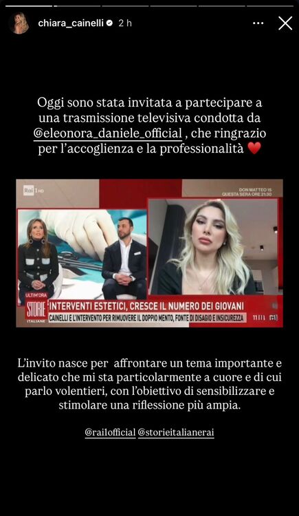 Chiara Cainelli è stata ospite della trasmissione di Eleonora Daniele, Storie italiane.