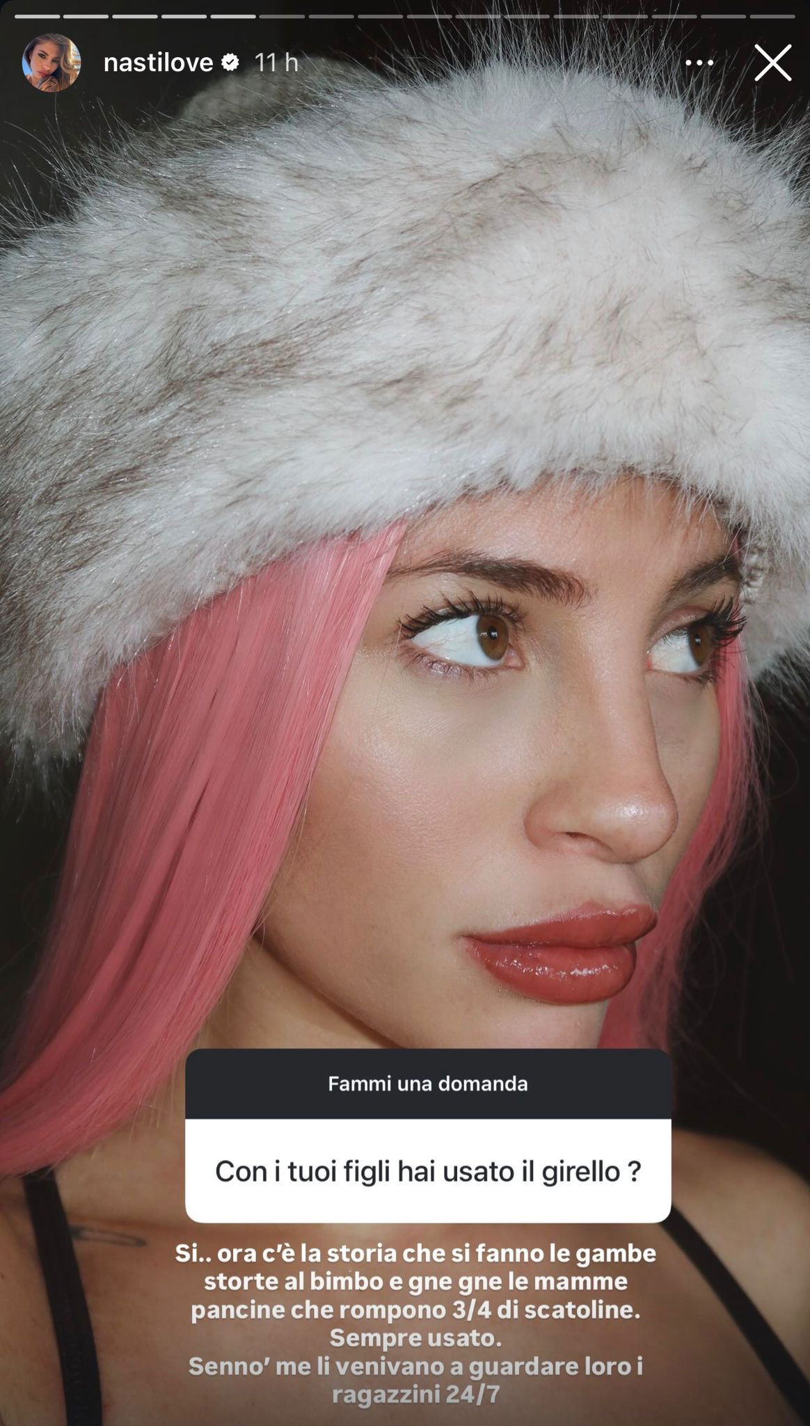 Un utente infatti le ha chiesto se con i suoi figli avesse utilizzato il girello e lei ha risposto in modo affermativo, nonostante sia sconsigliato dagli esperti perché può ostacolare lo sviluppo motorio naturale, ritardare il gattonamento e impedire lo sviluppo dell’equilibrio e causare una postura scorretta.