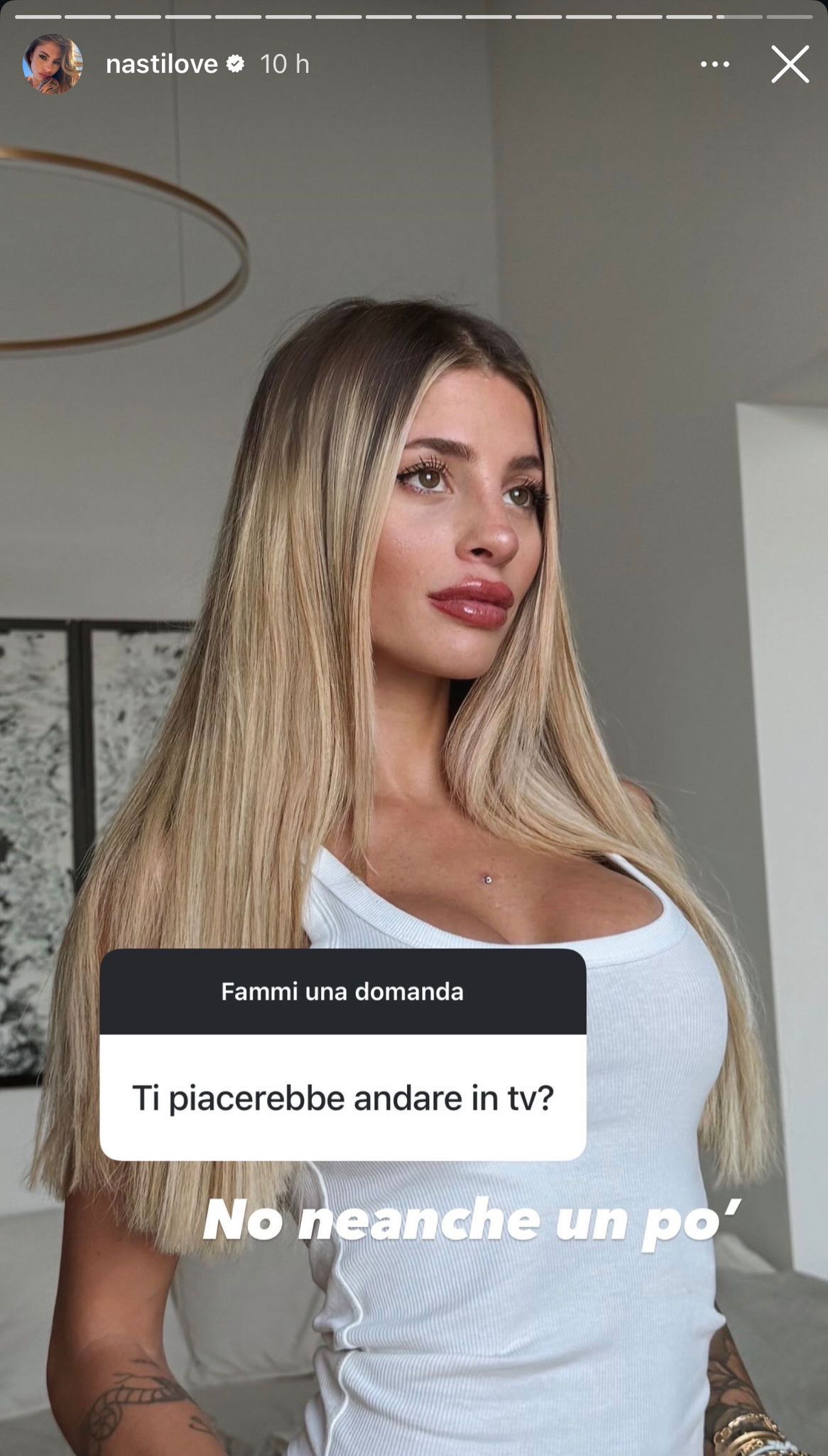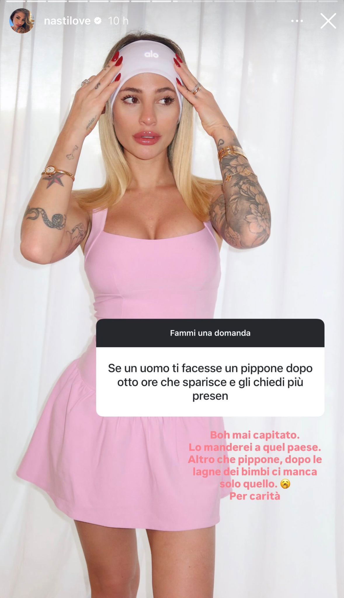 Nonostante ciò la Nasti ha sempre proseguito per la sua strada, incurante delle critiche e degli attacchi degli haters, continuando ad esprimere il proprio parere e a condividere la sua vita di moglie del calciatore Mattia Zaccagni e mamma di due bellissimi bambini.