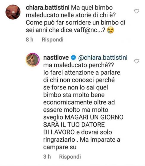 La Nasti ha pubblicato di recente un video dove un bambino dice una parolaccia, la cosa è stata fatta notare da una follower: