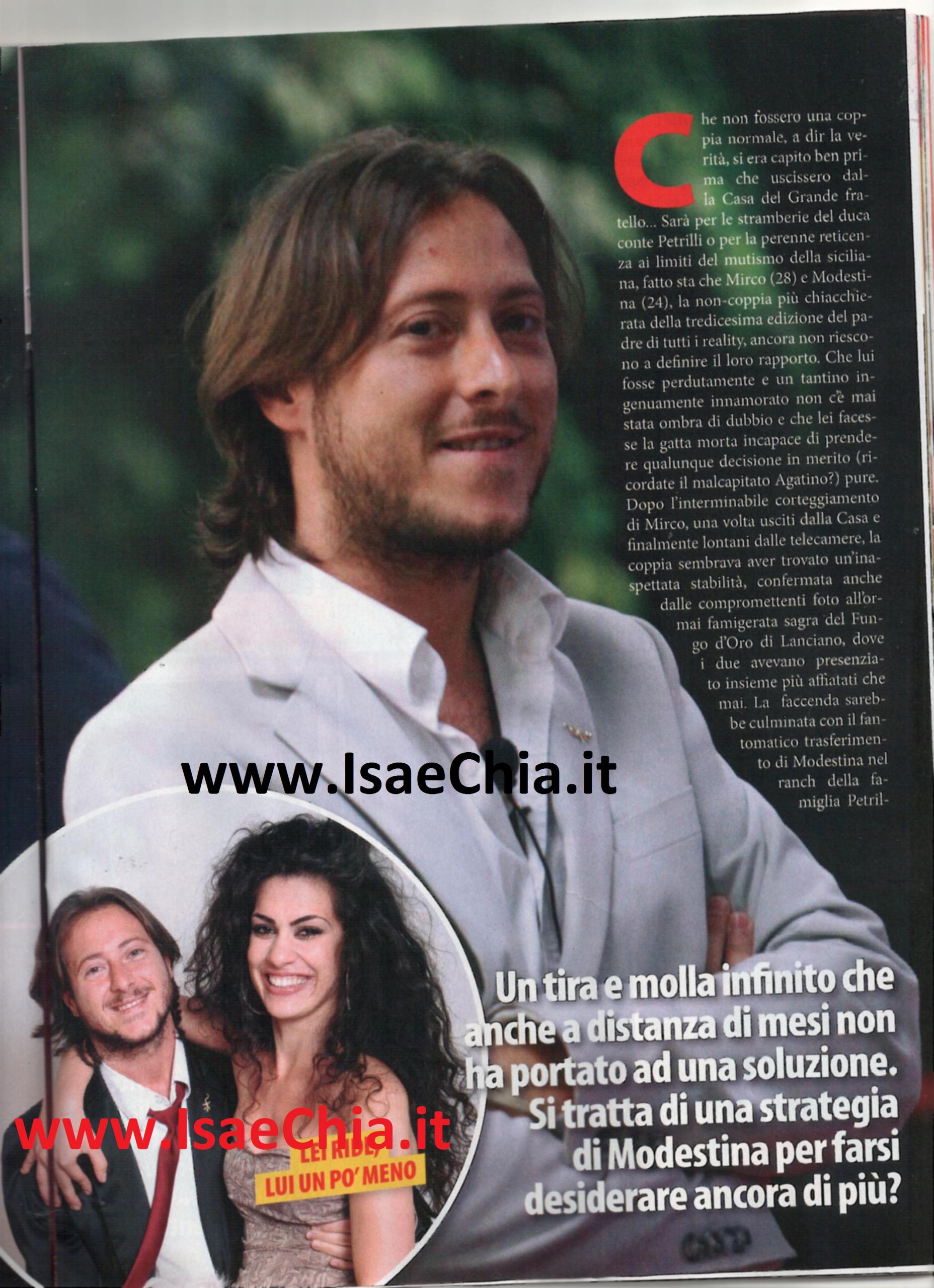 Un grande punto interrogativo, infine, è rappresentato dal rapporto tra il vincitore Mirco Petrilli e Modestina Cicero. La bella siciliana si dichiarava fidanzata, specificando che il contadino romano era solo un amico. Dopo l’interminabile corteggiamento di Mirco, però, pare che le cose siano cambiate: delle foto insieme alla Sagra del fungo d’oro di Lanciano hanno parlato chiaro. Inoltre, pare che Modì si sia trasferita nel ranch di Mirco. Entrambi evitano dichiarazioni, niente interviste, niente ospitate, pochissime foto sui social. “Sogna finché puoi. I sogni possono realizzarsi. E se non si realizzano, beh, hai sempre sognato” è la frase sibillina di lui. Dopo questa frase, che sembrava indicare l’assenza di speranza, è apparsa una foto con Modestina, accompagnata dalla didascalia “A chi ti fa sorridere, perché ti salva la vita senza saperlo”. Quale sarà la verità?