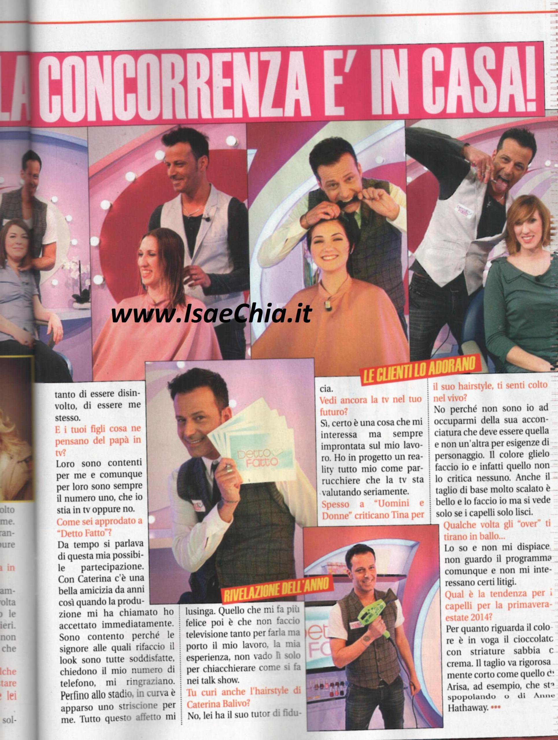 Più o meno alla stessa ora in cui Tina Cipollari è in onda nel ruolo di opinionista a Uomini e donne, suo marito Chicco Nalli, detto Kikò, è sulla rete della concorrenza, con Caterina Balivo a Detto fatto: nel programma, infatti, il parrucchiere rivoluziona il look alle signore insoddisfatte. “Non è ancora scoppiata la guerra di ascolti tra me e Tina, ma non escluderei niente. Certo che il fatto che i nostri programmi vadano in onda nella stessa fascia oraria sembra fatto apposta. Non credo di aver sottratto troppo pubblico a Uomini e donne, perché le due trasmissioni, pur essendo entrambe molto seguite, sono diversissime. Tina non guarda Detto fatto, guarda il suo programma, non il mio. D’altronde di capelli lei non ne capisce e che opinioni potrebbe dare? Non mi ha dato consigli su come stare davanti alle telecamere, mi ha detto di stare disinvolto e di essere me stesso. Con Caterina c’è un’amicizia da anni, così quando la produzione mi ha chiamato, ho accettato subito. Sono contento perché le signore sono soddisfatte, mi chiedono il numero di telefono. Perfino allo stadio, è uscito uno striscione per me. Non faccio tv tanto per farla, ma per portare la mia esperienza”. Quando gli si chiede se vede la tv anche nel suo futuro, risponde: “Certo, è una cosa che mi interessa, ma sempre improntata sul mio lavoro. Ho un progetto di un reality tutto mio come parrucchiere che la tv sta valutando seriamente”. Quando gli si chiede se si sente tirato in ballo, soprattutto durante il Trono Over, risponde: “Sui capelli di Tina no: io le faccio il taglio e il colore, ma non mi occupo dell’acconciatura del suo personaggio. So che vengo tirato in ballo nelle discussioni e non mi dispiace, ma a me non interessano certi litigi!”