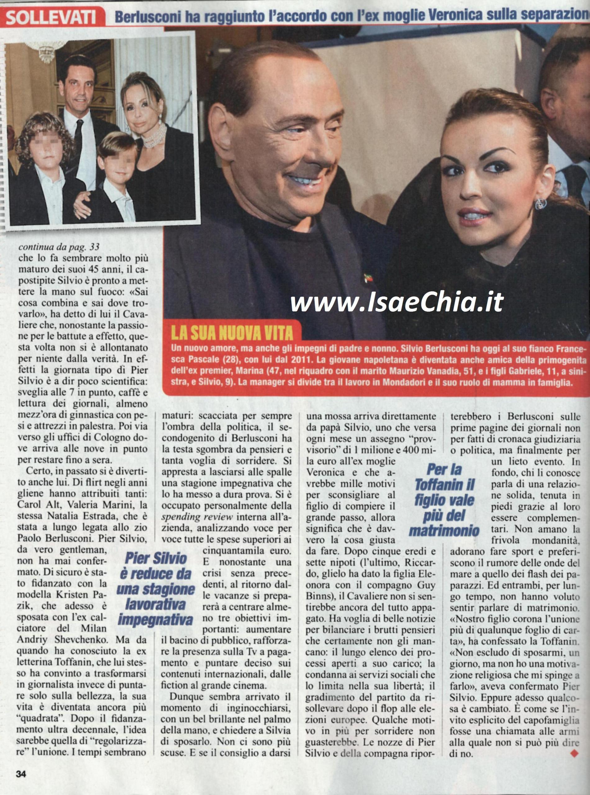 C’è una tradizione che l’ex Premier Silvio Berlusconi porta avanti da sempre: il lunedì sera raccoglie i suoi cinque figli intorno al caminetto per fare il punto sulle questioni più riservate. Ultimamente ha ribadito le sue intenzioni e ha specificato che nessuno di loro prenderà le redini del suo Partito. Inoltre, pare che abbia invitato il maschio maggiore, Pier Silvio, a fare ciò che la conduttrice Silvia Toffanin aspetta già da un po’: il grande passo. L’accordo tra Berlusconi Senior e l’ex moglie Veronica Lario è stato raggiunto ed è stato messo un punto alla questione riguardante l’immensa eredità. Così, essendo fuori dalla lista dei papabili alla direzione del Partito e avendo risolto le questioni “di Casa”, il Berlusconi Junior potrebbe sposare la Toffanin, dalla quale ha già un bimbo, Lorenzo Mattia, di 4 anni. Ultimamente si è dedicato alla spending review interna all’azienda, analizzando voce per voce tutte le spese superiori ai 50.000 euro e nonostante la crisi senza precedenti, si è fissato i tre obiettivi di allargare il bacino di pubblico, rafforzare la presenza sulla tv a pagamento e puntare su film e fiction internazionali; ma ora il periodo tosto sul lavoro è finito ed è ora di dare belle notizie a nonno Silvio! Quando non è dietro la scrivania a dirigere gli affari di Canale 5, Pier Silvio si dedica con amore alla sua compagna da 13 anni e al figlio, ad esempio andando in vacanza a Portofino con il loro yacht dal valore di 18 milioni di euro. Si direbbe, quindi, che ormai è tempo di ufficializzare l’unione, anche se l’ex letterina ha specificato: “Nostro figlio corona la nostra unione più di ogni foglio di carta”. Lui, invece, ha detto: “Non escludo di sposarmi, un giorno, ma non ho una motivazione religiosa che mi spinge a farlo”. Adesso qualcosa è cambiato: l’invito esplicito del capofamiglia è come una chiamata alle armi, alla quale non si può dire di no!