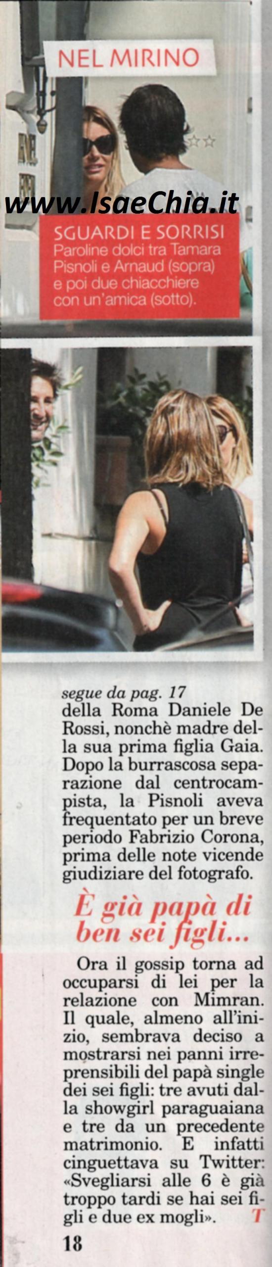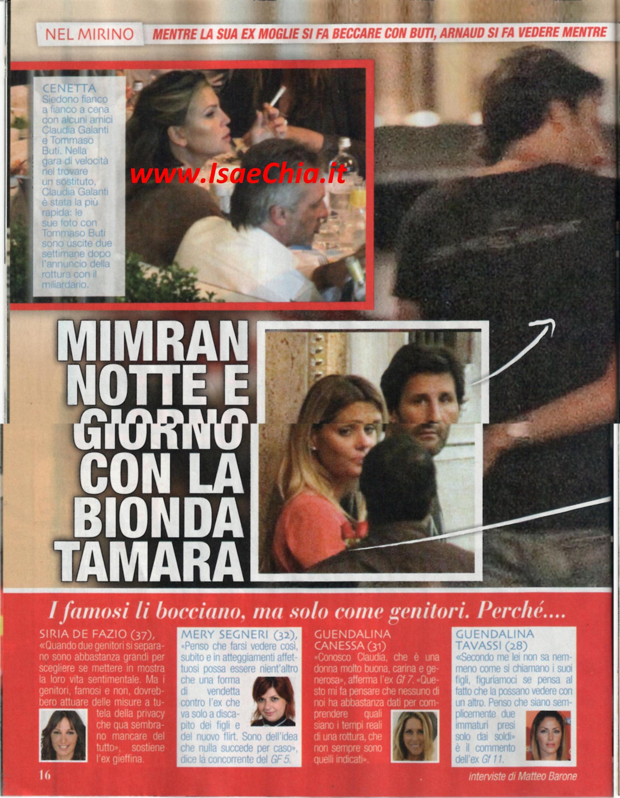 Solo poco tempo fa è arrivata la conferma della fine del matrimonio dell’ex naufraga Claudia Galanti e del ricchissimo imprenditore Arnaud Mimran, un’unione durata 4 anni e che ha dato come frutti tre figli. Ma i due non si sono persi d’animo e si sono fatti già vedere in giro con dei nuovi compagni. La bellissima paraguaiana, infatti, è stata vista sempre più spesso con l’imprenditore Tommaso Buti, per il quale avrebbe lasciato il marito. Quest’ultimo si è vendicato prima distruggendo i vestiti della mamma dei suoi figli, e poi facendosi vedere in giro con Linda Santaguida, ex di Costantino Vitagliano. Adesso, pare invece che il milionario abbia perso la testa per un’altra: ecco le foto con Tamara Pisnoli, un nome già più volte al centro del gossip. Si tratta, infatti, ell’ex moglie del calciatore Daniele De Rossi, che, dopo la separazione, ha frequentato per un breve periodo anche Fabrizio Corona.