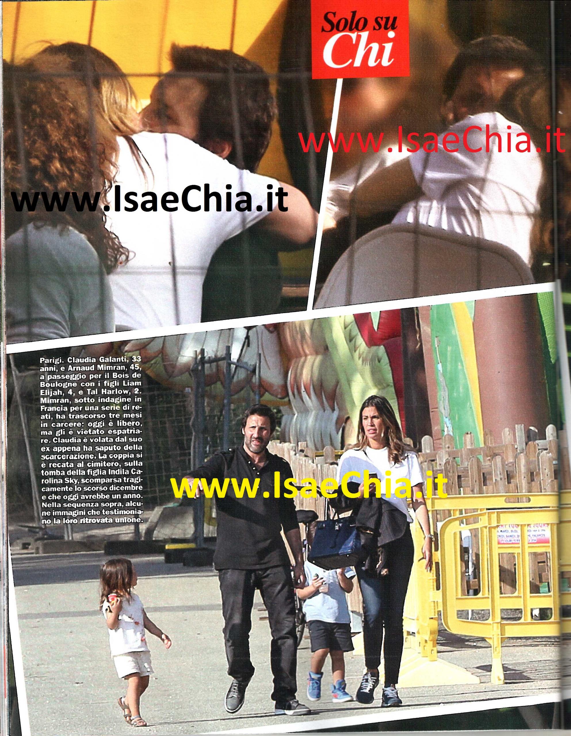 Ha colpito tutti la vicenda che ha riguardato l’ex naufraga dell’Isola dei famosi Claudia Galanti e la figlia Indila Carolina Sky, morta improvvisamente a soli otto mesi. La piccola era col padre, il ricco imprenditore Arnaud Mimran e la compagna, mentre Claudia era in vacanza con le amiche. In seguito al lutto che l’ha colpita e alle vicende giudiziarie che hanno riguardato l’ex compagno, la Galanti e Arnaud si sono riavvicinati. E queste foto pubblicate dal settimanale Chi ne sono l’ulteriore conferma. Eccoli insieme a passeggio per il Bois de Boulogne, a Parigi, con i figli Liam Elijah e Tal Harlow. Mimran è stato sotto indagine in Francia per una serie di reati e ha trascorso tre mesi in carcere. Oggi è libero, ma gli è vietato espatriare, così la modella lo raggiunge per fargli vedere i figli e, appena ha saputo della scarcerazione, ha preso il primo volo. La coppia si è recata al cimitero sulla tomba della piccola Indila. E poi, seduti sulla panchina, si avvicinano. Dalle foto sembra che i due si scambino un tenero bacio, uno di quelli che si davano quando la loro famiglia era unita… E chissà che non ci sia un grande ritorno di fiamma!