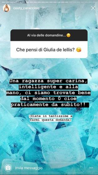Inevitabili, quindi, le domande dei più curiosi sul rapporto con la De Lellis, descritta dalla Caracciolo come “una ragazza super carina, intelligente e alla mano, ci siamo trovate bene praticamente da subito“: