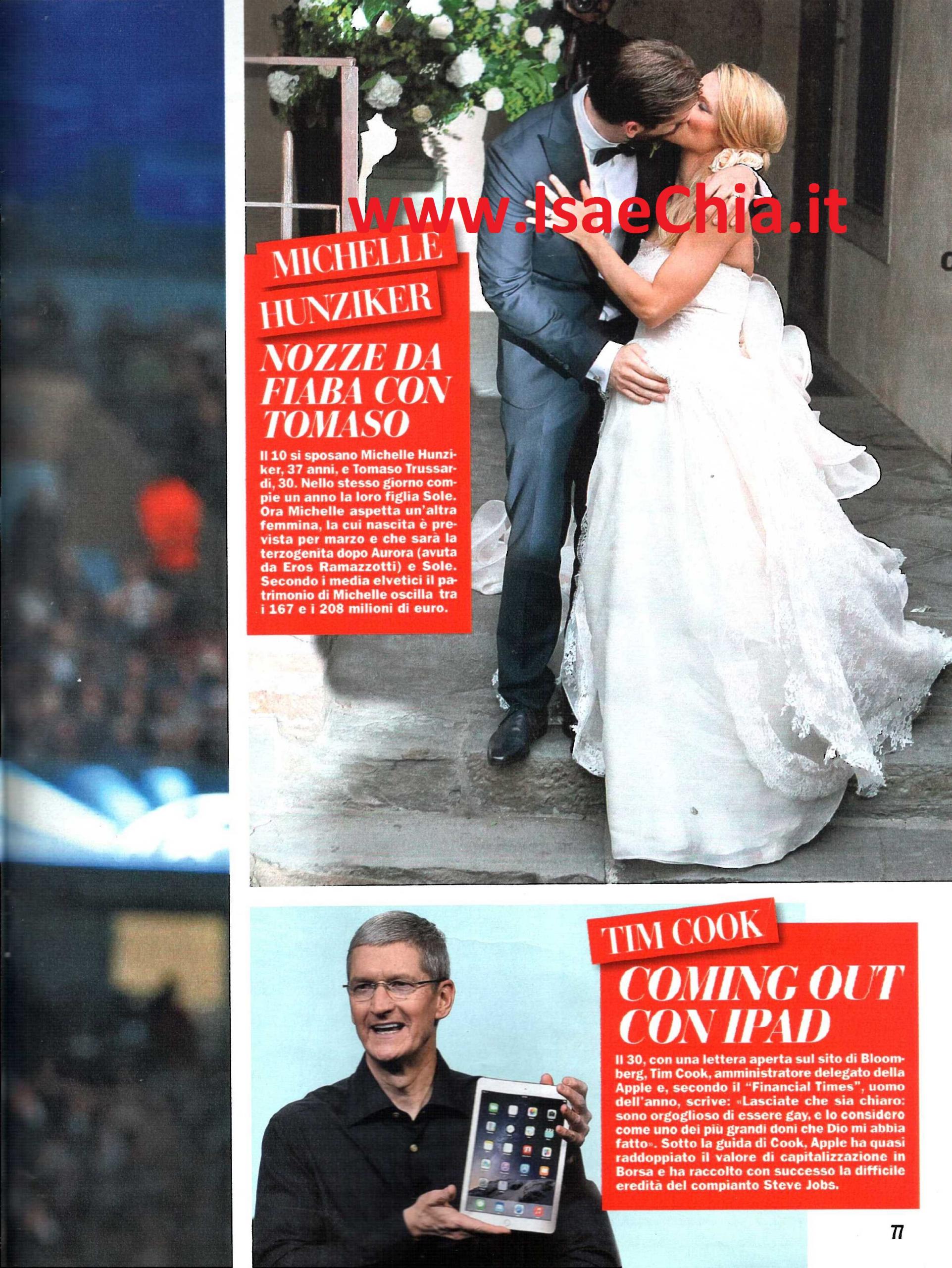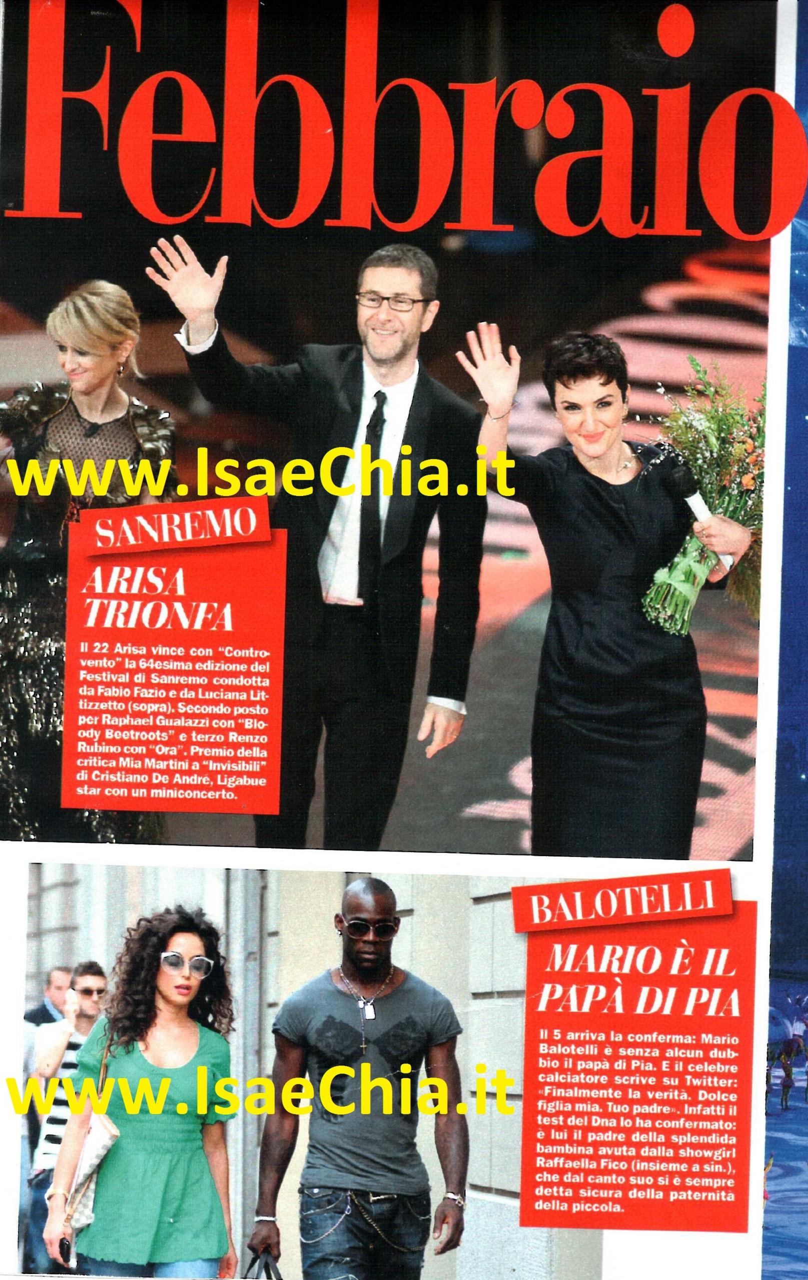 Il gossip, invece, è ancora dominato dalle vicende di Raffaella Fico e Mario Balotelli: il calciatore scrive “Finalmente la verità, dolce figlia mia. Tuo padre” su Twitter e annuncia di aver riconosciuto la piccola Pia come sua figlia. Un’altra coppia composta da showgirl e calciatore ha appassionato i lettori dei rotocalchi: Kevin “Prince” Boateng e Melissa Satta annunciano il matrimonio, previsto, forse per il 2015. Nel frattempo, i due sono andati a vivere insieme in Germania, dove gioca lui, e il 15 aprile hanno dato alla luce il piccolo Maddox.