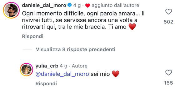 Daniele Dal Moro e Yulia, dopo la brusca rottura il ritorno di fiamma: la romantica dedica social di lei (e la reazione di lui)