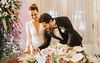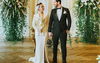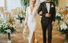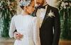 Abito rigorosamente bianco per la sposa, mentre l’attore ha scelto un elegante smoking nero:
