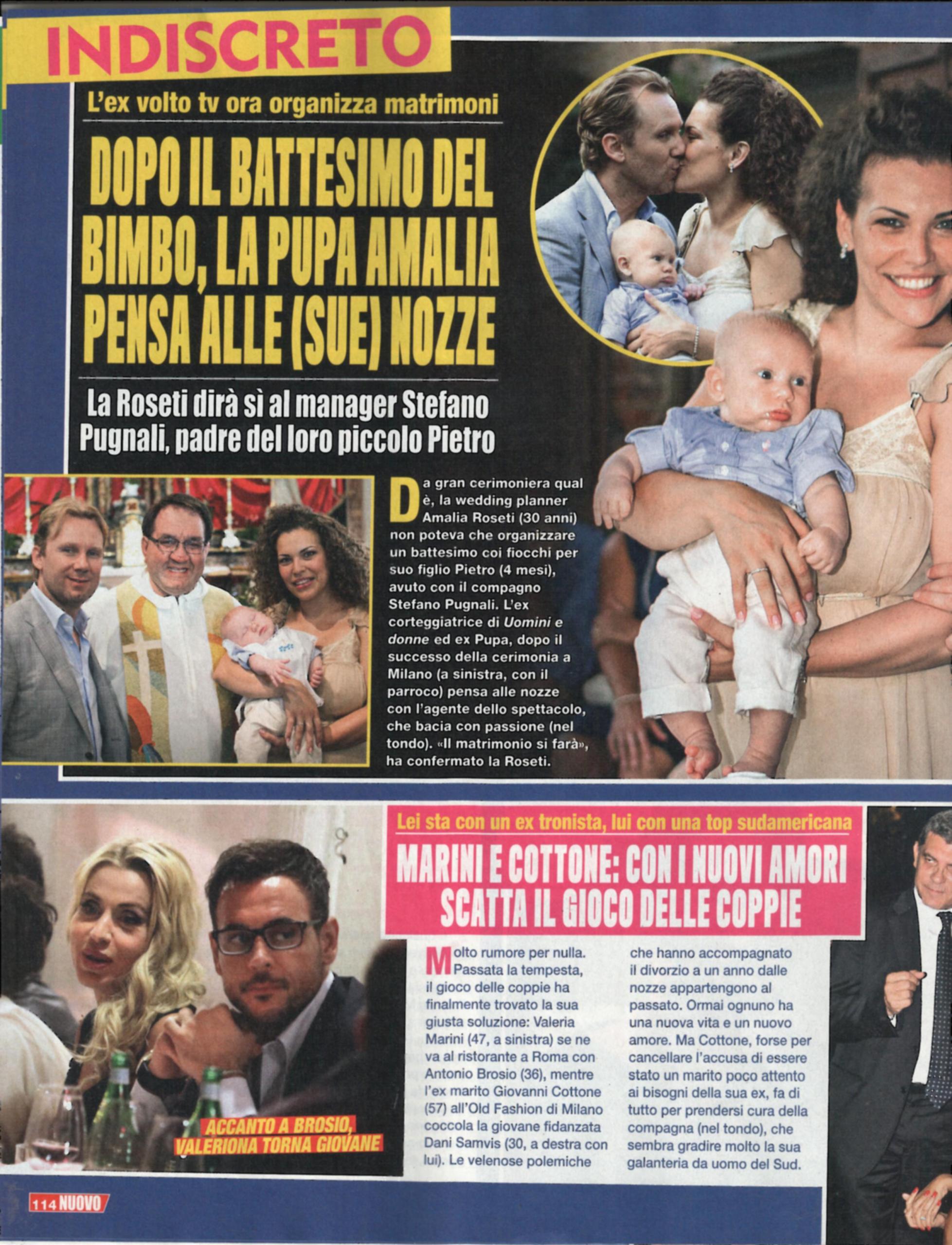 Ne è passato di tempo da quando la bella Amalia Roseti corteggiava Luca Dorigo a Uomini e donne: dopo l’esperienza nel programma di Maria De Filippi, infatti, Amalia è stata una delle Pupe de La pupa e il secchione. Adesso, invece, ha abbandonato il mondo dello spettacolo e si è data da fare nella sua nuova carriera da wedding planner. Da gran cerimoniera quale è, non poteva che organizzare un battesimo coi fiocchi per suo figlio Pietro, avuto 4 mesi fa dal compagno Stefano Pugnali, di cui Nuovo mostra qualche foto in esclusiva. Dopo il successo della cerimonia, Amalia ha rivelato: “Il matrimonio si farà” e lo conferma anche nei fatti, stampando un bel bacio al suo futuro marito.