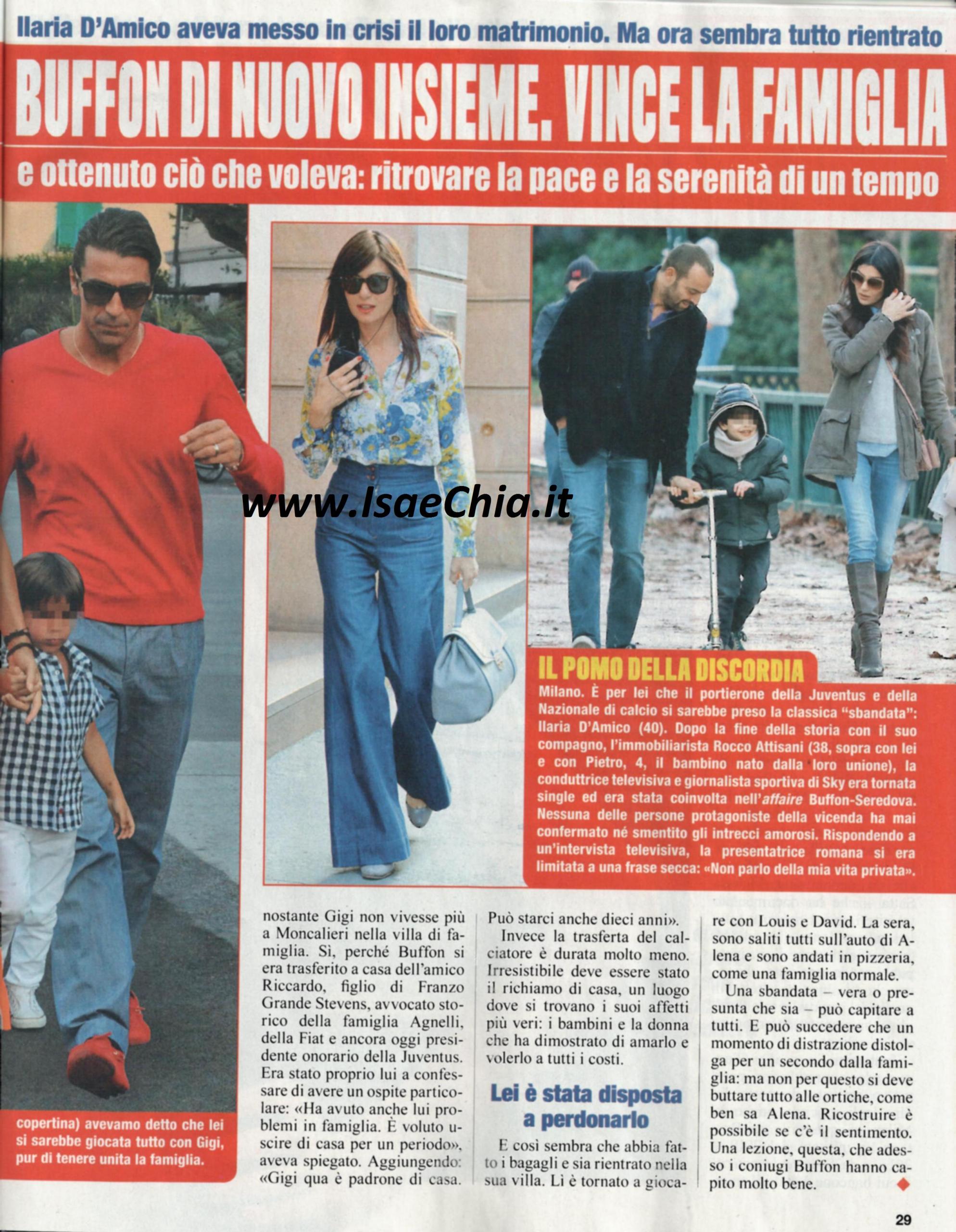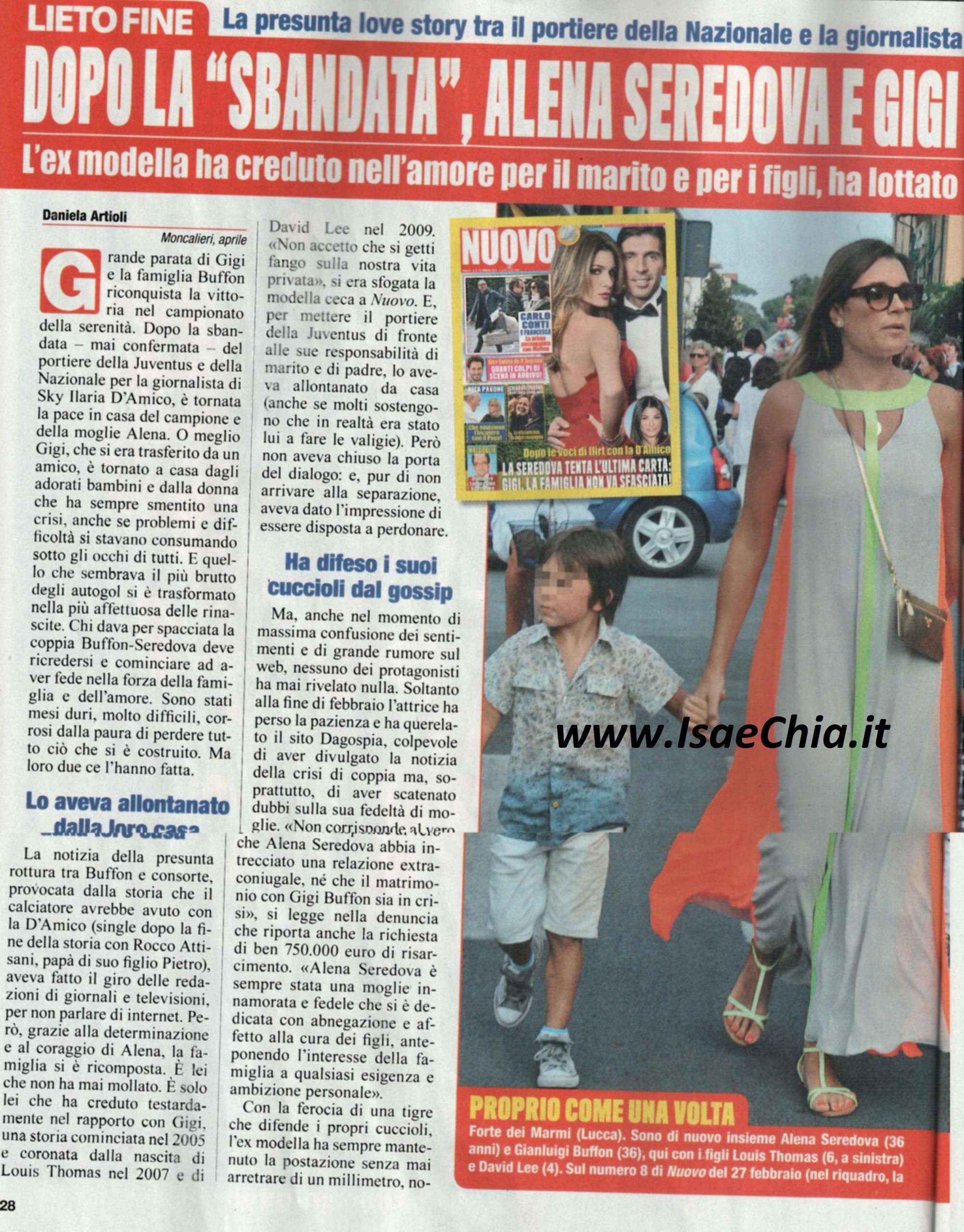 Dopo la sbandata, in realtà mai confermata, del portiere della Juventus Gigi Buffon per la conduttrice Sky Ilaria D’Amico, è tornata la serenità tra lui e la moglie Alena Seredova. O meglio, Gigi, che si era trasferito da un amico, è tornato a casa dalla sua famiglia e dalla donna che ha sempre smentito una crisi. Chi dava per spacciata la coppia deve ricredersi: sono stati mesi difficili, corrosi dalla paura di perdere ciò che avevano costruito, ma ce l’hanno fatta. La loro storia è cominciata nel 2005 ed è stata coronata dalla nascita di Louis Thomas nel 2007 e David Lee nel 2009. Poi, per mettere il marito di fronte alle responsabilità, lei lo aveva allontanato da casa, anche se molti sostengono che in realtà fosse stato lui a fare le valigie. Lei, per difendere il suo matrimonio, ha deciso di querelare il sito Dagospia, colpevole di aver diffuso la notizia della crisi della coppia e soprattutto di aver ipotizzato l’infedeltà della moglie. “Non corrisponde a vero né che Alena abbia una relazione extraconiugale, né che il matrimonio sia in crisi” si legge nella denuncia, che riporta la richiesta di 750.000 euro di risarcimento. “Lei è sempre stata una moglie innamorata e fedele che si è dedicata ai figli anteponendo la famiglia a qualsiasi interesse personale”. Al contempo, Riccardo Grande Stevens, che l’aveva ospitato in casa propria, ha dichiarato: “Ha avuto problemi di famiglia e ha voluto uscire di casa per un poco. Qui è padrone di casa, può starci anche 10 anni”. Ma la trasferta è durata molto meno: eccolo in giro per Forte dei Marmi al fianco della moglie, mentre tengono i bambini per mano.