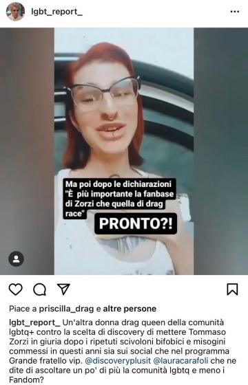 Queste le parole che accompagnano il video a cui la drag queen Priscilla ha messo il like: