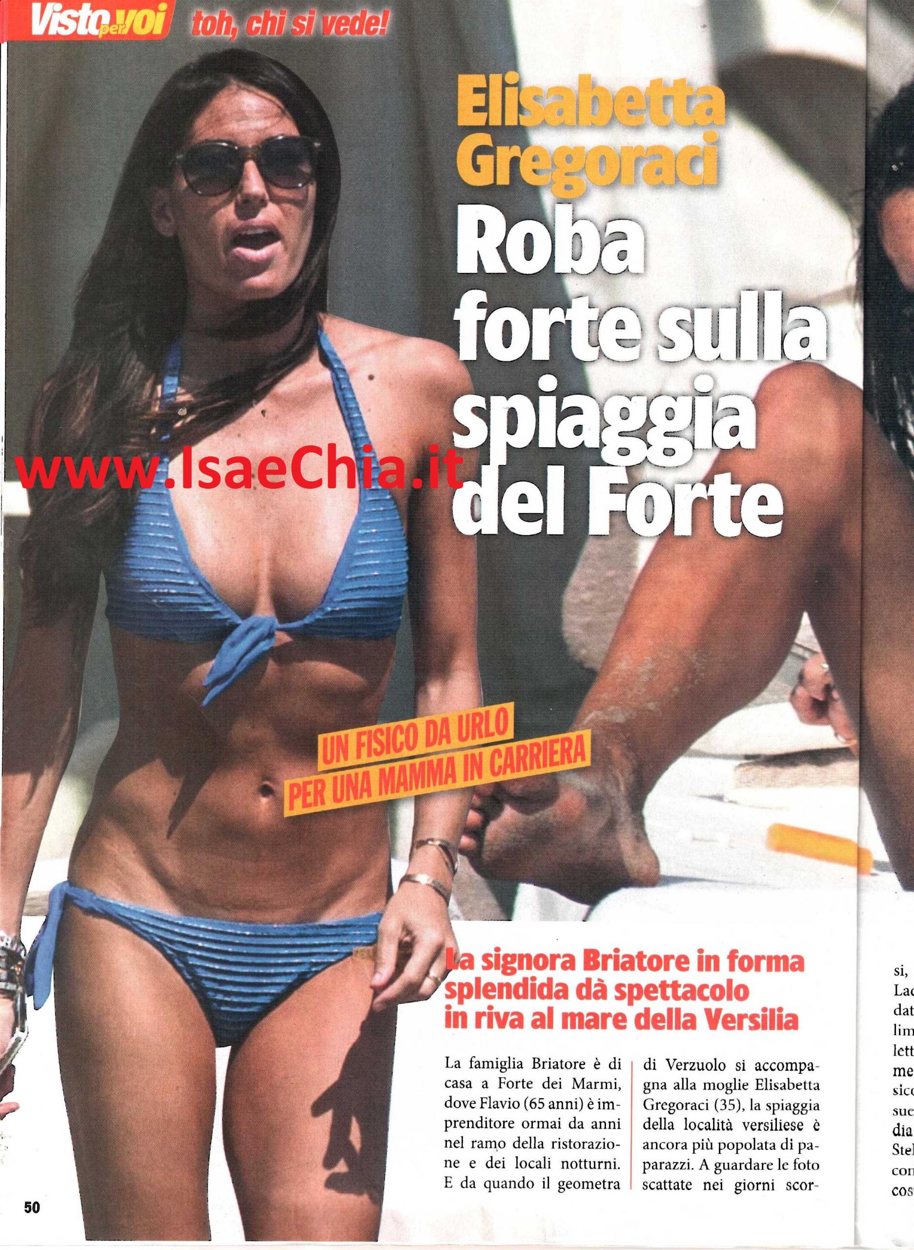 Durante l’anno, la famiglia Briatore vive a Montecarlo, ma è di casa anche in Kenya e a Forte dei Marmi, dove Flavio è imprenditore ormai da anni nel ramo della ristorazione e dei locali notturni. E, da quando l’imprenditore-giudice di The apprentice si accompagna alla moglie Elisabetta Gregoraci, la spiaggia della località versiliese è ancora più infestata da paparazzi. A guardare le foto scattate nei giorni scorsi, si può capire bene perché. La conduttrice di Made in Sud, infatti, ha dato spettacolo sullo stabilimento balneare dove, tra lettino, spiaggia e mare, ha fatto sfoggio del suo fisico asciutto e delle sue curve mozzafiato. E, tra una contorsione sul lettino e l’altra, il costume di Elisabetta si è infilato proprio dove non dovrebbe, lasciando così ai paparazzi tanto materiale da immortalare…Ignorando completamente il consorte Flavio e il figlio Nathan Falco. Del resto, con cotanta moglie in bella vista…