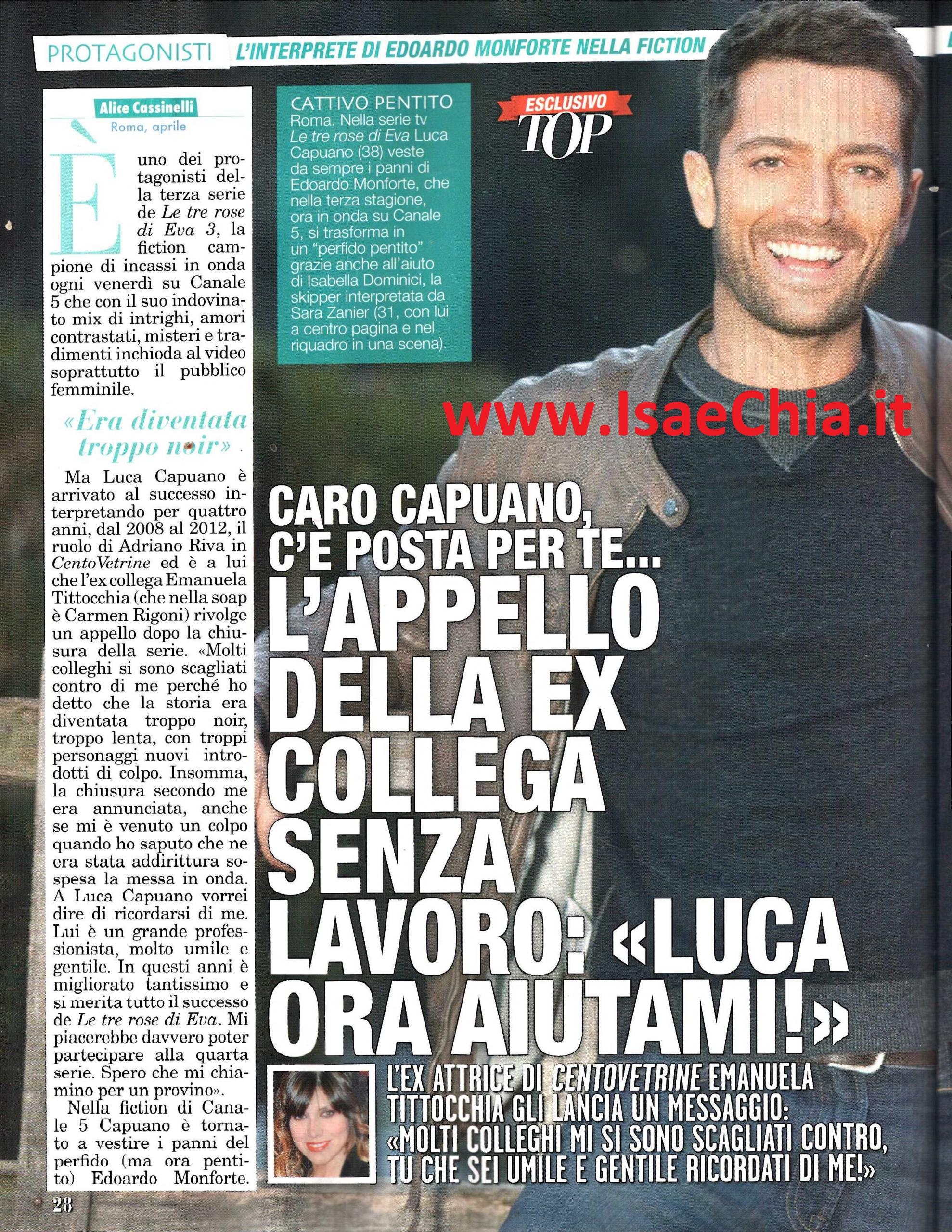 Solo pochi giorni fa vi abbiamo raccontato delle nuove vicende sentimentali dell’attrice Emanuela Tittocchia, che da qualche mese è fidanzata con un uomo di vent’anni più giovane di lei (QUI per leggere l’articolo). Ma se sul fronte sentimentale è felice, non si può dire lo stesso dal punto di vista professionale. La soap CentoVetrine, di cui lei era una delle storiche protagoniste, ha recentemente chiuso i battenti e lei si è ritrovata senza lavoro. Ecco perché decide di lanciare un appello all’ex collega Luca Capuano, che ha interpretato Adriano Riva nella soap ed ora è in tv con Le tre rose di Eva 3: “Molti colleghi si sono scagliati contro di me perché ho detto che la storia di CentoVetrine era diventata troppo noir, troppo lenta, con personaggi nuovi introdotti di colpo. Insomma, la chiusura per me era annunciata, anche se mi è venuto un colpo quando ho saputo che era stata addirittura sospesa la messa in onda. A Luca vorrei dire di ricordarsi di me. Lui è un grande professionista, molto umile e gentile. In questi anni è migliorato tantissimo e si merita il successo de Le tre rose di Eva. Mi piacerebbe davvero poter entrare nella quarta stagione della serie. Spero che mi chiamino per un provino!” ha dichiarato la Tittocchia. Capuano, nel frattempo, è tornato nella serie per interpretare Edoardo Monforte, un personaggio complesso: “In questa stagione scoprirà la sua identità attraverso un percorso lungo e imprevedibile; all’inizio si ritrova senza memoria e confuso e non sa chi è. Lo ritroviamo dopo tre anni dalle vicende dell’ultima serie, mentre vive un buco temporale perché ha perduto la memoria. Attraverso le sue indagini e le sue memorie, porterà gli spettatori a ricostruire gli eventi. Poi sarà costretto a dimostrare la sua innocenza e diventerà più complice del fratello. E’ stato interessante lavorare col personaggio di Edoardo, perché si muove su due livelli: quello della realtà che è dentro di lui e quello di voler essere un’altra cosa, di cogliere una seconda occasione. Io stesso ho vissuto un momento particolare, una perdita familiare. Ho perso mia nonna, che era come una madre per me e quel viaggio interiore è lo stesso che ho fatto anch’io” ha raccontato l’attore. Sposato dal 2012 con la collega Carlotta Lo Greco, da cui ha due figli, Luca si racconta anche nella vita privata: “Carlotta mi ha messo di fronte ai miei difetti. Abbiamo due caratteri diversi, ma proprio per questo ci completiamo perfettamente. Anche se i miei figli sono piccoli, insegno loro il rispetto per le diversità, per le donne e per le fatiche altrui”, ha raccontato mentre rivelava di aver portato ai suoi figli, di ritorno da un viaggio, le foto toccanti di bambini senza scarpe che vendevano il pane per strada: “E’ stato un modo per far capire che tanti bambini non hanno molti giocattoli come loro, è importante che imparino ad apprezzare ciò che hanno“.