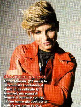 Emma Marrone, la cantante vincitrice di Amici 9, parla della cantante vincitrice dell’edizione precedente, Alessandra Amoroso. Emma non giustifica i comportamenti avuti da Alessandra che, in un momento di nervosismo, ha trattato male dei fan, ma la comprende. E a chi dice che si odiano, Emma risponde che è “un’invenzione degli ignoranti”. Anzi, lei sogna di tornare a Sanremo con Ale!