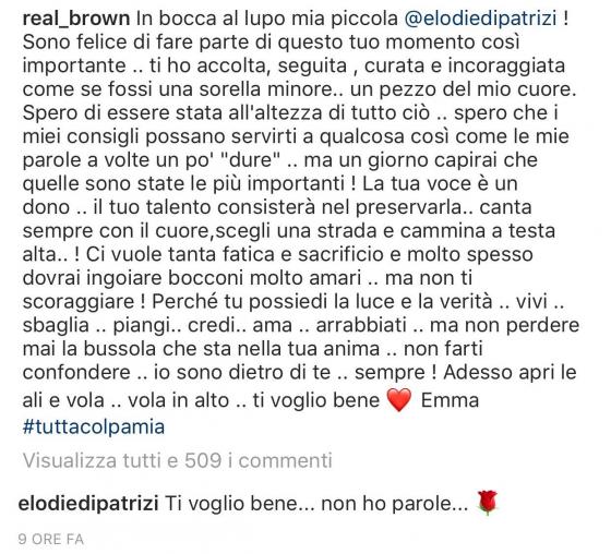 Canzone dopo canzone e giorno dopo giorno, tra Elodie ed Emma è nata una bellissima amicizia, che diventa sempre più forte nel tempo e si stringe a ogni collaborazione che le due ex allieve di Amici regalano ai numerosissimi fan. Nelle scorse ore, la Marrone, in vista della partecipazione della Di Patrizi al Festival Di Sanremo, ha voluto spendere per l’amica delle parole molto toccanti e colme di affetto.