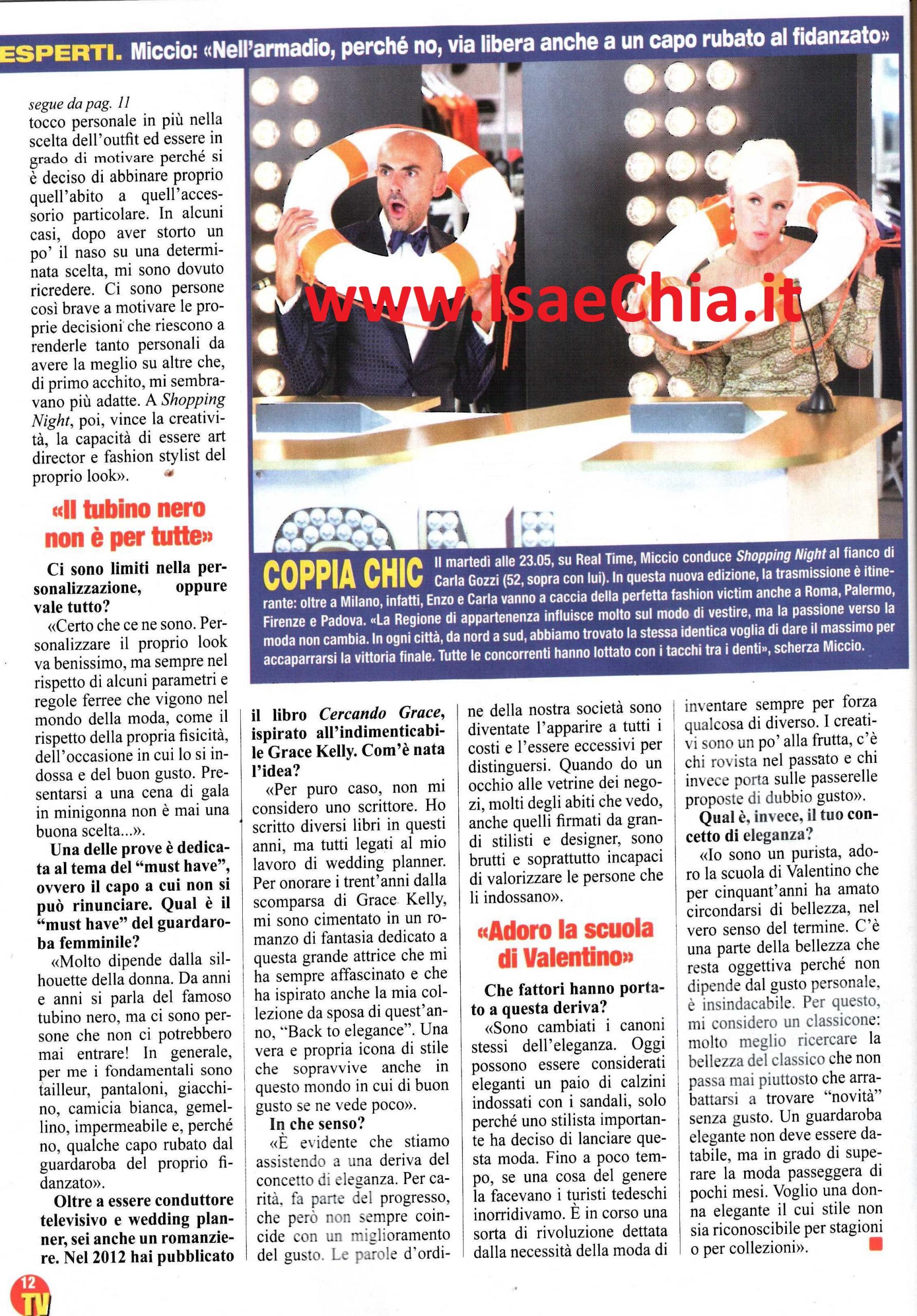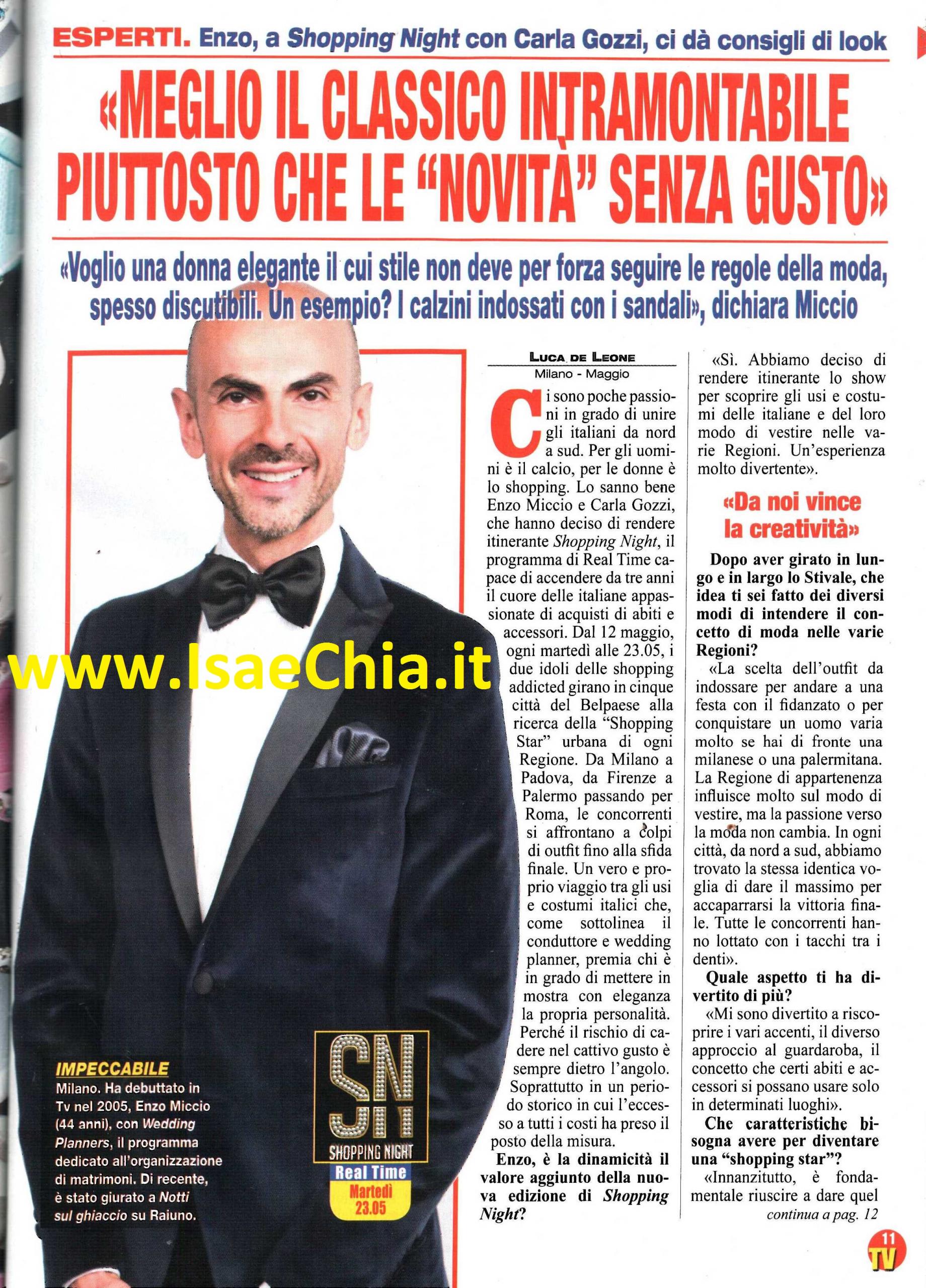 Dal 12 maggio, ogni martedì sera su Real Time, Enzo Miccio e Carla Gozzi presentano la versione itinerante di Shopping Night, in cui i concorrenti si sfidano a colpi di outfit. Intervistato, lo stilista e wedding planner commenta: “Abbiamo deciso di renderlo itinerante per scoprire usi e costumi delle italiane e del loro modo di vestire nelle varie regioni. La scelta dell’outfit da indossare per andare a una festa con il fidanzato o per conquistare un uomo varia molto se hai di fronte una milanese o una palermitana: la regione di appartenenza influisce molto sul modo di vestire, ma la passione verso la moda non cambia. In ogni città abbiamo trovato la stessa identica voglia di dare il massimo per accaparrarsi la vittoria finale! Mi sono divertito a scoprire i vari accenti, il diverso approccio al guardaroba, il concetto che certi abiti e accessori si possano usare solo in determinati luoghi“. Quando gli si chiede che caratteristiche debba avere una ‘shopping star’, Enzo risponde: “E’ fondamentale saper dare quel tocco in più nella scelta dell’outfit ed essere in grado di motivare perché si è deciso di abbinare quell’abito a quell’accessorio particolare. In alcuni casi, dopo aver storto un po’ il naso su una scelta, mi sono dovuto ricredere. Ci sono persone così brave a motivare le decisioni che riescono a renderle tanto personali da avere la meglio su altre che mi sembravano più adatte: a Shopping night vince la creatività. Certo, ci sono limiti nella personalizzazione: va sempre bene, ma nel limite di certi parametri, come il rispetto per la propria fisicità, dell’occasione in cui si indossa un outfit e il buon gusto. Presentarsi a una cena di gala in minigonna non è mai una buona scelta“. Una delle prove, in particolare, è dedicata al ‘must have’, il capo a cui non si può rinunciare…: “Molto dipende dalla silhouette della donna. Danni si parla del famoso tubino nero, ma ci sono persone che non ci potrebbero mai entrare! In generale, per me sono fondamentali i tailleur giacca e pantaloni, giacchino, camicia bianca, impermeabile e perché no, un capo rubato dal guardaroba del proprio fidanzato!“. Infine, parlando del suo concetto di eleganza e del suo libro, Cercando Grace, ispirato all’indimenticabile Grace Kelly, l’ex concorrente di Ballando con le stelle e giudice di Notti sul ghiaccio commenta: “Non mi considero uno scrittore, ho scritto diversi libri legati alla professione di wedding planner. Per onorare i 30 anni dalla scomparsa di Grace Kelly, mi sono cimentato in un romanzo di fantasia dedicato all’attrice che ha ispirato la mia collezione da sposa di quest’anno, una vera icona di stile che sopravvive in questo mondo in cui di buon gusto se ne vede poco: le parole d’ordine della nostra società sono apparire a tutti i costi e essere eccessivi per distinguersi. Sono cambiati i canoni stessi di eleganza: oggi possono essere eleganti anche i calzini indossati con i sandali, solo perché uno stilista ha deciso di lanciare questa moda. E’ una rivoluzione dettata dalla necessità della moda di inventare sempre per forza qualcosa di diverso e sulle passerelle vengono portate proposte di dubbio gusto. Io sono un purista, adoro la scuola di Valentino, che per 50 anni ha amato circondarsi di bellezza.C’è una parte di bellezza che resta oggettiva, insindacabile. Per questo mi considero un classicone: meglio ricercare la bellezza del classico che non passa mai piuttosto che arrabattarsi a trovare ‘novità’ senza gusto. Voglio una donna elegante, il cui stile non sia riconoscibile per stagioni o per collezioni“.