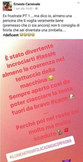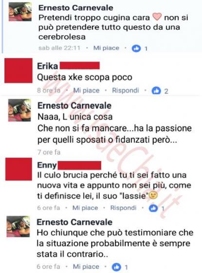 Ernesto, che generalmente preferisce rispondere con indifferenza alle frecciatine della donna, questa volta non è riuscito a trattenersi e, attraverso il suo profilo Facebook, ha deciso di consigliare alle persone che le vogliono bene, di starle vicino e di convimcerla a mettere un punto a tutta questa assurda situazione in quanto starebbe passando per una zimbella: