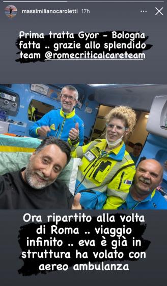 Stando a quanto riportato dai colleghi di Gossipetv.com, Eva Henger ha lasciato Gyor, la città dove era stata ricoverata insieme al marito ed pè stata trasferita a Roma. La notizia è stata data direttamente Caroletti, che sui suoi profili social ha spiegato che Eva è stata trasportata in eliambulanza.