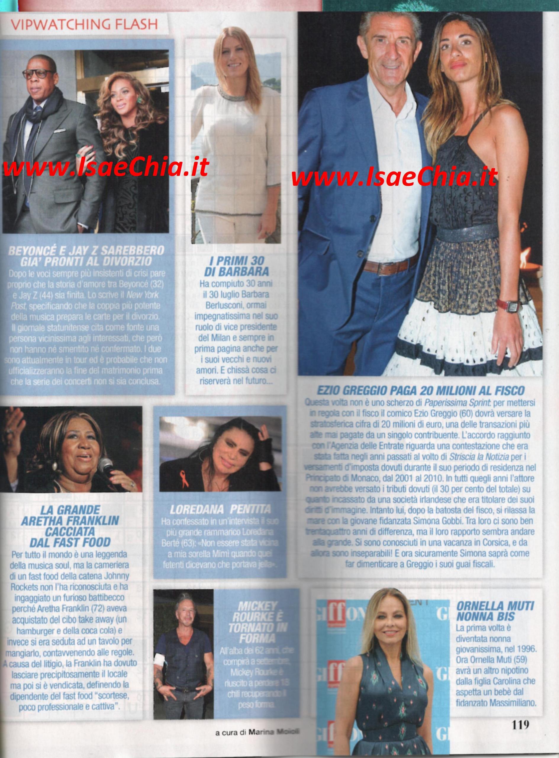 Ezio Greggio paga 20 milioni al fisco; Tomaso Trussardi derubato; Beyoncé e Jay-Z divorziano
