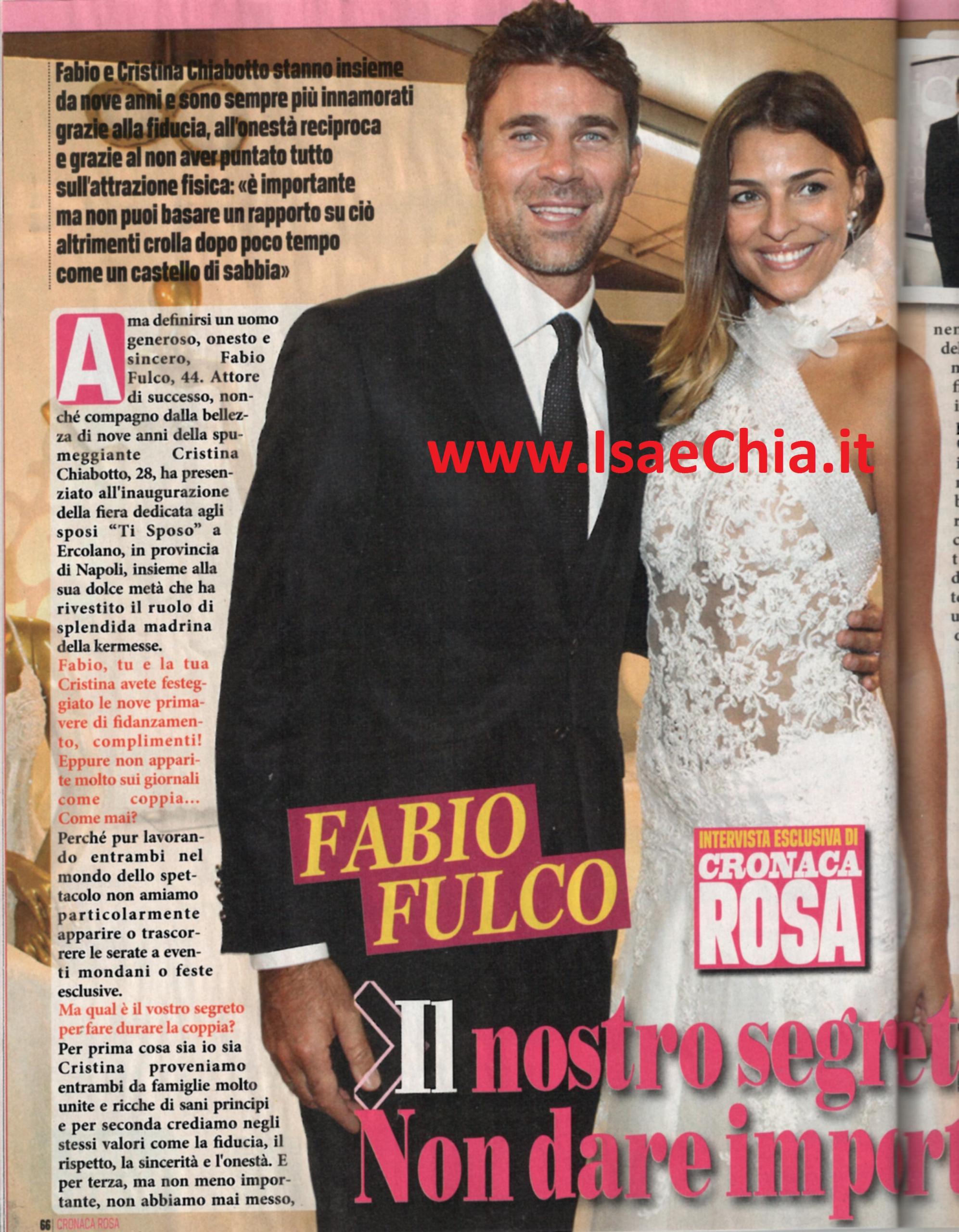 L’attore Fabio Fulco e l’ex Miss Italia Cristina Chiabotto si sono conosciuti nove anni fa a Ballando con le stelle e da allora sono fidanzati. I due sono apparsi raggianti all’evento Ti sposo di Ercolano, dove lei era madrina dell’evento e l’attore di origini napoletane ha spiegato perché non appaiono spesso insieme sui giornali: “Pur lavorando entrambi nel mondo dello spettacolo, non amiamo particolarmente apparire o trascorrere delle serate a eventi mondani e feste esclusive. Il nostro segreto? Innanzitutto entrambi proveniamo da famiglie molto unite, ricche di sani principi e crediamo in valori come fiducia, rispetto, sincerità e onestà. E, importante, non abbiamo mai messo al primo posto l’attrazione fisica, nemmeno all’inizio della nostra storia. Certo, è importante, ma non puoi basare un rapporto su questo, altrimenti il rapporto crolla dopo un po’ come un castello di sabbia. Ci siamo presi di testa. Ogni giorno che passa capisco di più che Cristina è la donna della mia vita e dopo nove anni non ho più dubbi” dice lui. Così, quando gli si chiede se c’è aria di matrimonio, risponde: “Non siamo prossimi, ma è comunque nei nostri progetti. Quando sarà il momento, lo annunceremo. Diventare padre? Sì, ci penso. E lo sarò quando Cristina sarà pronta a diventare madre”. Infine, quando gli si chiede dei progetti lavorativi, svela: “Sto girando A un passo dal cielo, fiction di Rai 1 con Terence Hill. E poi sto lavorando anche all’estero con alcune fiction e alcuni film, ma per ora non dico altro”.
