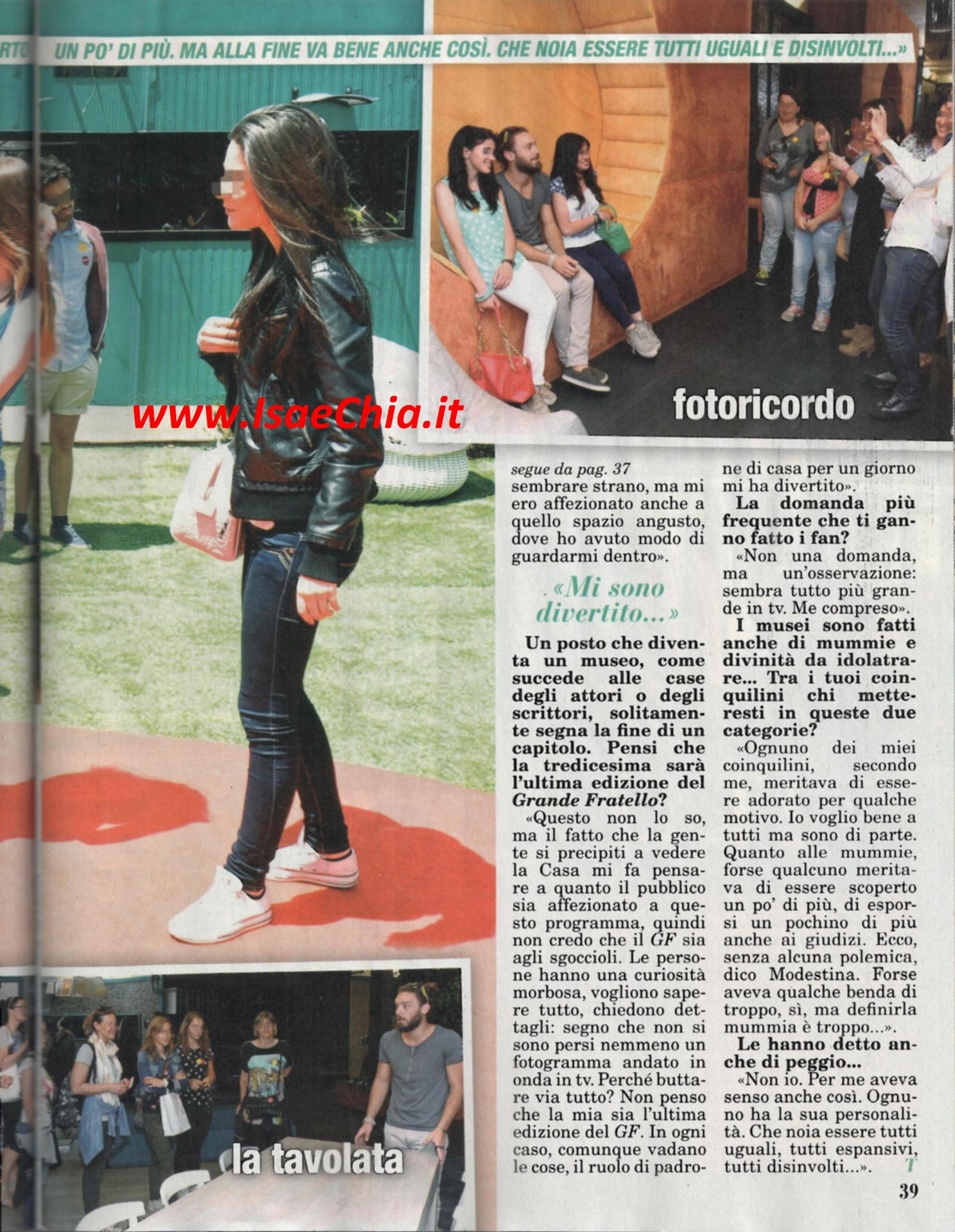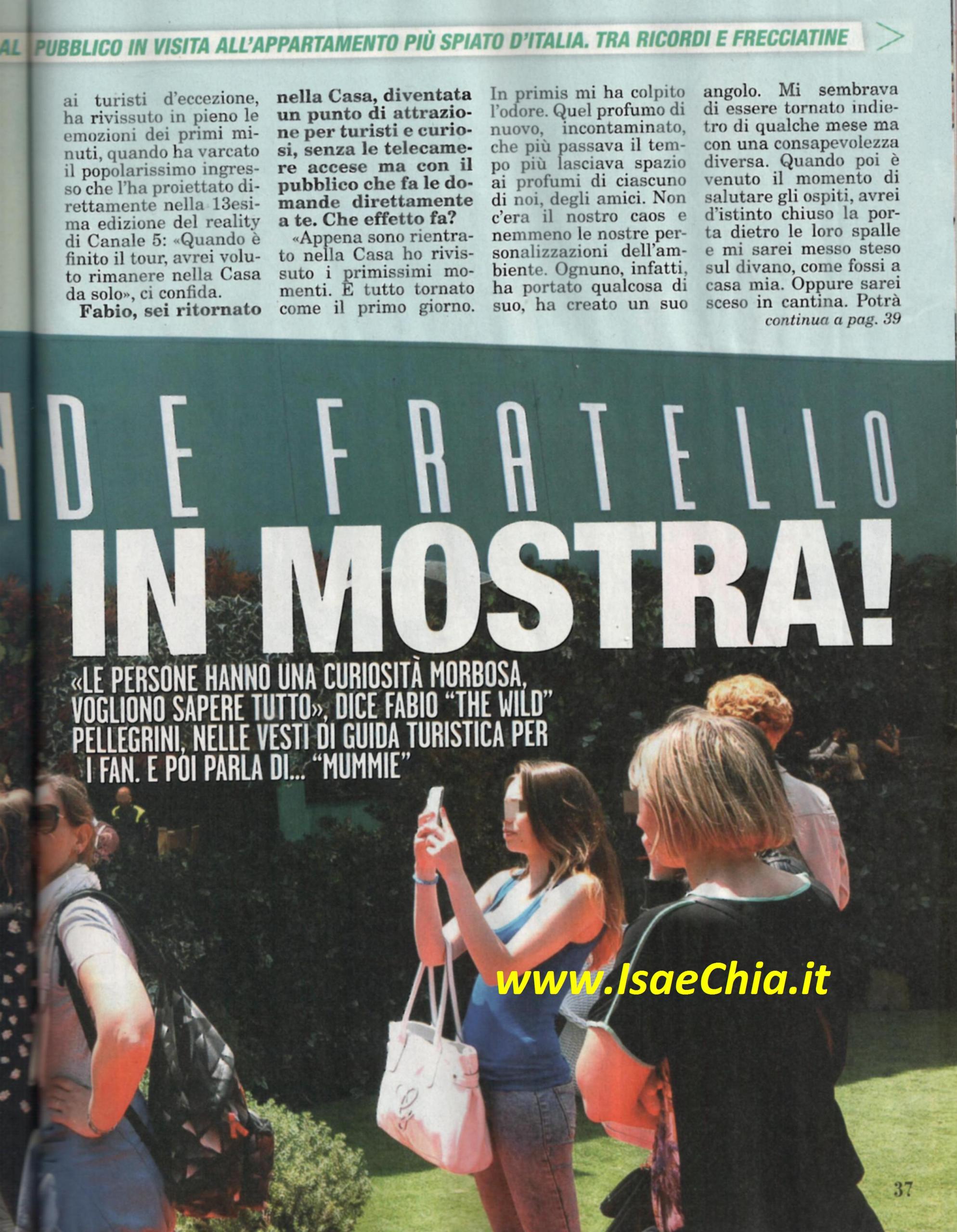 La Casa del Grande fratello diventa, per la prima volta, una sorta di museo dedicato alla storia del programma: resterà visitabile tutti i giorni fino al 22 giugno, con i coinquilini dell’ultima edizione a fare da ciceroni. “Quando è finito il tour, avrei voluto rimanere da solo nella Casa” confessa Fabio Pellegrini. “Appena vi sono rientrato, ho rivissuto i primi momenti. Mi ha colpito l’odore di nuovo, incontaminato, che man mano ha preso gli odori dei coinquilini. Non c’erano il nostro caos e le nostre personalizzazioni; mi sembrava di esser tornato indietro di qualche mese, ma con una consapevolezza diversa. Quando è venuto il momento di salutare gli ospiti, ho avuto l’istinto di chiudere la porta e stendermi sul divano, come se fossi stato a casa mia. Vedere che la gente si precipiti a vedere la Casa mi fa pensare a quanto il pubblico sia affezionato a questo programma: non credo che il GF sia agli sgoccioli. Le persone hanno una curiosità morbosa, vogliono sapere tutto, non si sono persi nemmeno un fotogramma in tv. La loro osservazione più comune era che sembrava tutto più grande…Compreso me!”. Infine, quando gli si chiede quale coinquilino cataloga tra le “divinità da idolatrare” e quali tra “le mummie”, risponde: “Ognuno aveva qualcosa da adorare. Io voglio bene a tutti ma sono di parte. Quanto alle mummie, forse qualcuno meritava di scoprirsi di più, di esporsi di più anche ai giudizi. Ecco perché, senza troppe polemiche, dico Modestina Cicero. Forse aveva qualche “benda” di troppo”. Quando gli si fa notare che le è stato detto anche di peggio, osserva: “Non io, per me aveva un senso anche così. Ognuno ha la sua personalità. Che noia essere tutti espansivi e disinvolti!”