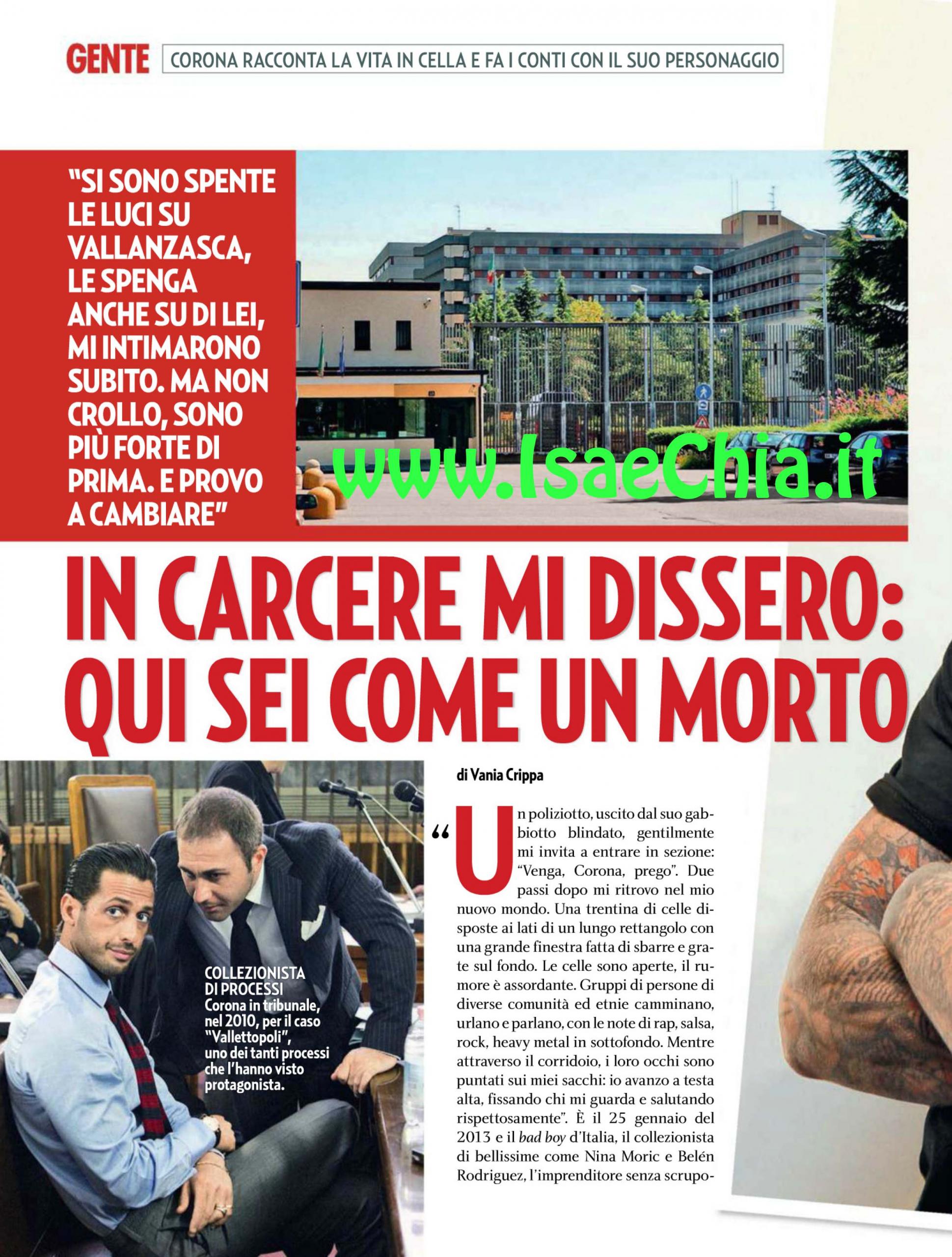 Il 25 gennaio sarà passato un anno da quando il re dei paparazzi Fabrizio Corona è stato condannato a sette anni di prigione, poi aumentati a 13. Adesso, a pochi giorni dall’uscita del suo libro Mea culpa, racconta: “Tre cose mi hanno fatto passare molte notti insonni: la paura della malattia, lo smantellamento di tutto quello che avevo creato fuori e la decadenza fisica dovuta al carcere. Quando si decide di vivere una vita spericolata, si riesce ad ottenere facilmente ciò che hai sempre desiderato, sei drogato di adrenalina e non ascolti nessuno perché metti sempre te stesso davanti a tutto, prima o poi cadi”. Fabrizio è caduto a Busto Arsizio, ma cerca di metter su un progetto per raccogliere fondi per la struttura apprezzato dal direttore e dagli educatori, ma che non va in porto. Anzi, viene trasportato nel carcere di massima sicurezza di Opera: “Mi rendo conto che la mia detenzione inizia in quel momento: mi aspetta il carcere duro”. Dopo aver raccontato il suo impatto con la nuova cella, il pianto attaccato alle sbarre, lo spostamento in una nuova cella e aver presentato il suo compagno di cella Pietro, racconta: “Le giornate passano metodiche: sveglia alle 7.15, entro le 7.30 devi aver fatto colazione. Il pranzo (12.30) e la cena (7 di sera) devono seguire delle regole: prima di mangiare, coi bicchieri pieni d’acqua, ci si guarda negli occhi e si dice “buon appetito”. Ci si alza solo dopo aver finito entrambi e aver detto “buona digestione”. Vietato stare a torso nudo o in mutande, anche ad agosto. Poi, è arrivata “la mia salvezza”, Emiliano il pazzo. I detenuti fanno la fila per venire da noi e tirarsi su col morale”. Ma a Corona sono arrivati anche tanti “no”: “Mi è stato impedito di fare parte di un gruppo, di una commissione, di prendere integratori, persino di prendere parte al teatro della struttura. E soprattutto la cosa più pura e onesta che ci potesse essere”, scrive, riferendosi alla possibilità di incontrare suo figlio Carlos. “Faccia conto che lei è morto. Per 11 anni non può avere contatti con l’esterno e deve morire anche il suo personaggio” gli hanno detto. Lui, però, non si arrende, e scrive al figlio: “Tu meriti un papà che venga riconosciuto per le sue virtù. Mi basta vivere quest’esperienza per dimostrarti che c’è sempre tempo per cambiare e capire. Anche nelle circostante più brutte, quando la vita ti toglie tutto, ti puoi rialzare e imparare, diventare una persona migliore. Non per me stesso, non per gli altri, ma per te, Carlos”.