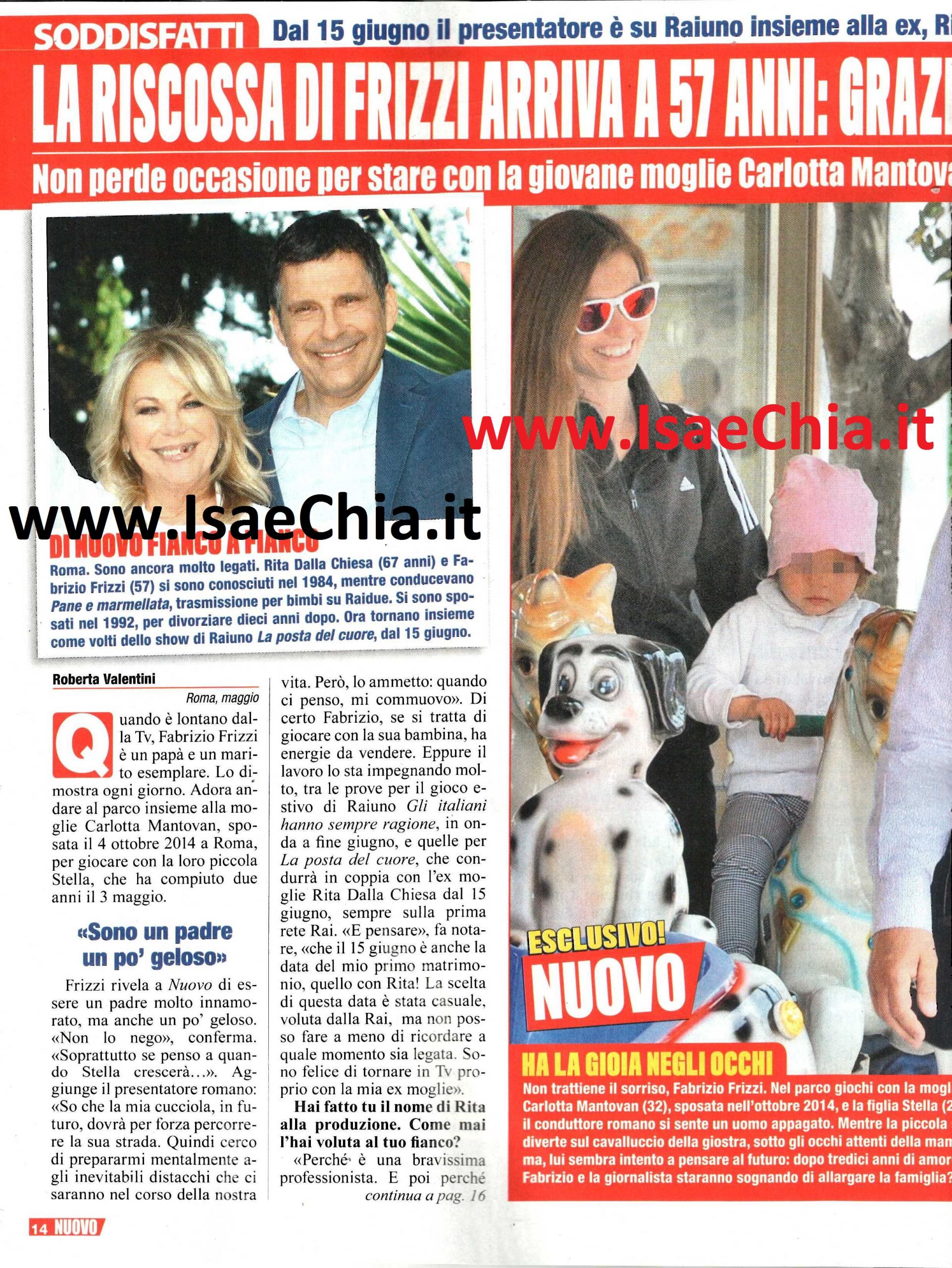 Quando è lontano dalla tv, Fabrizio Frizzi è un papà esemplare e lo dimostrano queste foto, scattate negli scorsi giorni, mentre è felice al parco con la moglie Carlotta Mantovan e la figlia Stella, che ha appena compiuto 2 anni. Più che della moglie, con la quale sta dal 2001, quando si sono conosciuti a Miss Italia, Fabrizio è geloso di sua figlia e non ne fa segreto: “Non lo nego, soprattutto se penso a quando crescerà! So che la mia cucciola, in futuro, dovrà per forza percorrere la sua strada. Quindi cerco di prepararmi mentalmente agli inevitabili attacchi che ci saranno nel corso della nostra vita. Però lo ammetto: quando ci penso, mi commuovo“. Ma questi momenti di spensieratezza con la famiglia non dureranno a lungo: il 15 giugno, infatti, Frizzi ripartirà con un programma che condurrà proprio insieme alla sua ex moglie, Rita Dalla Chiesa, La posta del cuore: “E pensare che il 15 giugno è anche la data del mio primo matrimonio, quello con Rita! La scelta di questa data è stata casuale, voluta dalla Rai, ma non posso fare a meno di ricordare a quale momento sia legata. Ho proposto Rita perché penso che sia la più adatta per dare consigli in questa rubrica quotidiana che si occupa di problemi sentimentali. Tra me e lei c’è ancora una complicità straordinaria. In fondo abbiamo condiviso 16 anni di vita e rimangono ricordo bellissimi perché le cose positive non passano mai. Affermare che siamo un esempio è un parolone. Diciamo che siamo testimonianza del fatto che è un peccato buttare via ciò che c’è di buono nei rapporti che finiscono“. Infine, quando gli si fa notare che nella sua vita tutto gira intorno all’elemento femminile (una figlia, una moglie, un’ex moglie co-conduttrice) e gli si chiede cosa insegnano le donne, Fabrizio risponde: “Mi completano, giorno dopo giorno. Perché rispetto agli uomini, hanno una marcia in più, una lucidità e una consapevolezza inimmaginabili. E ti fanno capire come affrontare la vita e il rapporto con gli altri con sensibilità. Insomma, creano un confronto inevitabile e necessario per crescere!“.