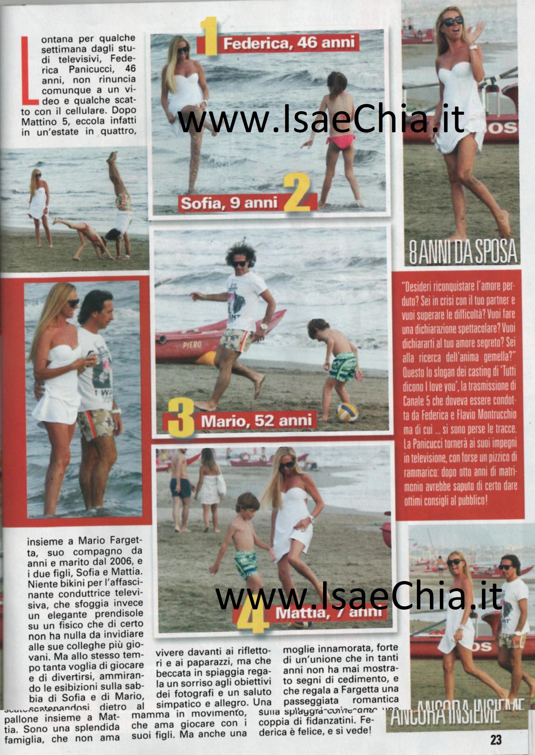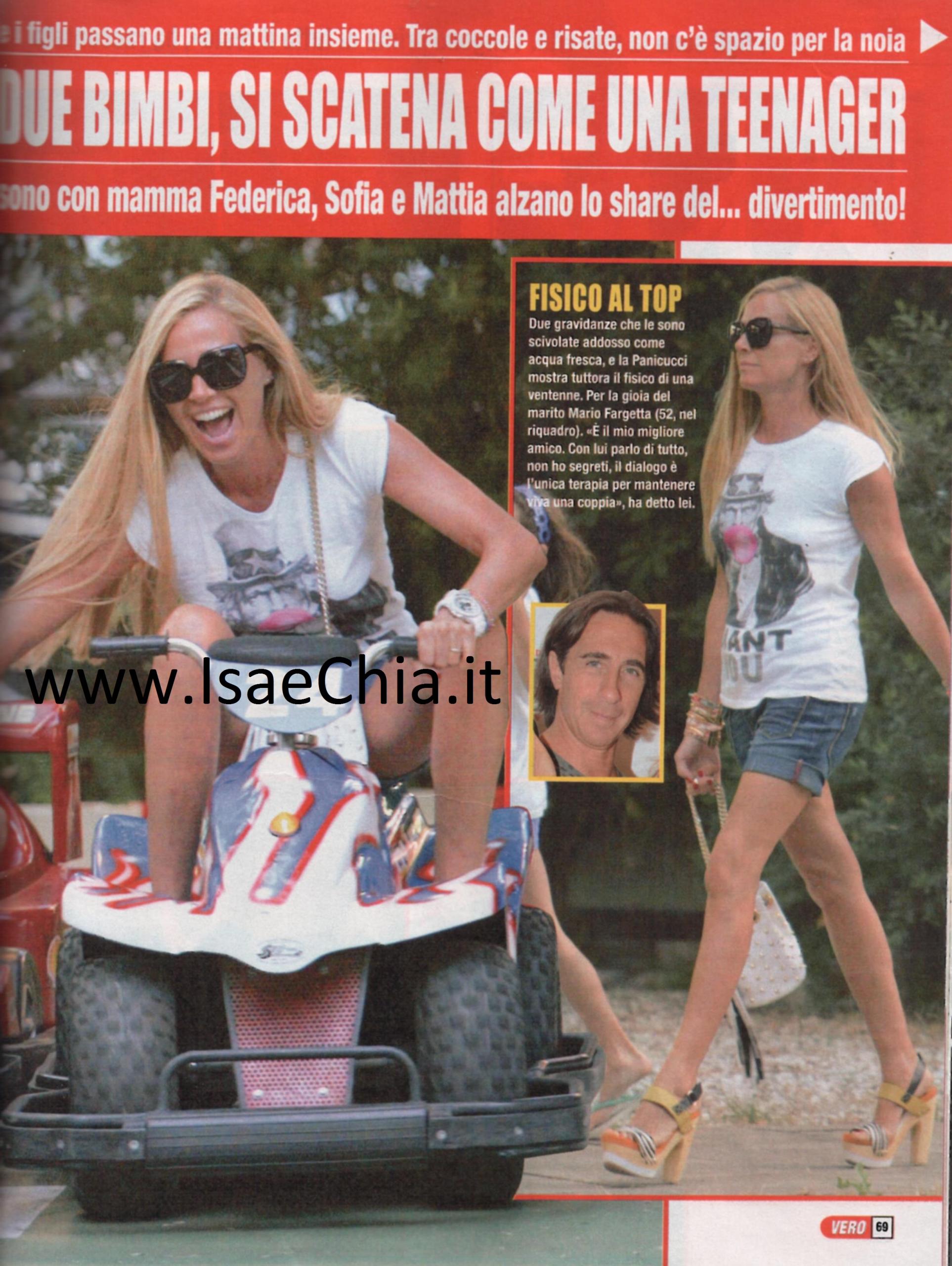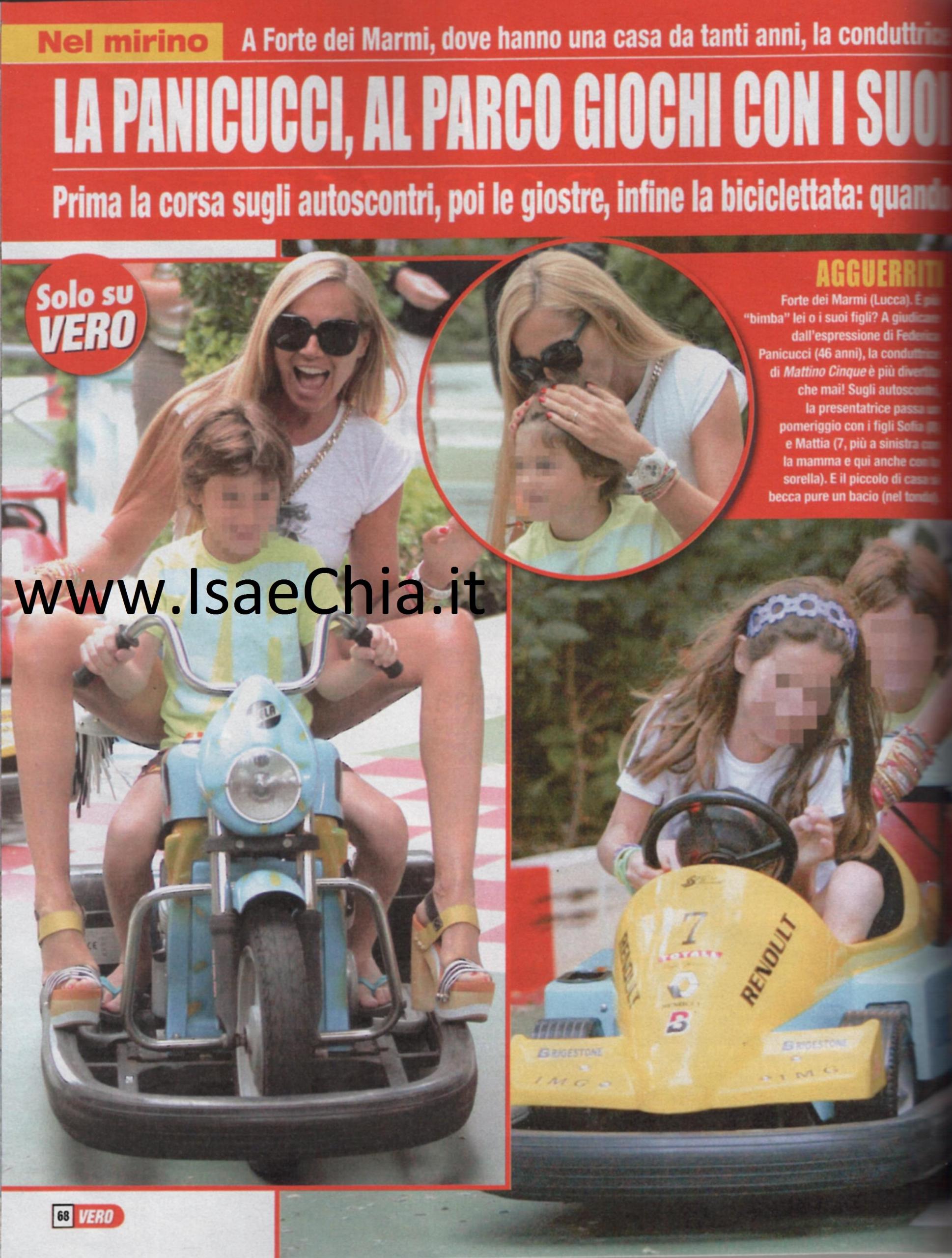 Lontana per qualche settimana dalle telecamere, la conduttrice Federica Panicucci non rinuncia comunque a qualche video e a qualche scatto col cellulare: “Il mio iPhone e il mio iPad sono pieni di foto dei miei figli. Sarò ingenua, ma nel riguardarli mi commuovo. Loro sono la mia vita, poi viene tutto il resto” ha dichiarato lei. Ed eccola in spiaggia a Forte dei Marmi con il marito, il dj Mario Fargetta, e i due figli Sofia e Mattia. Per lei niente bikini, ma un elegante prendisole bianco, nonostante potesse mostrare un fisico degno di nota. Federica guarda dapprima la figlia mentre fa la capriola, mentre poco dopo Mario gioca con il maschietto a pallone. Qualche giorno dopo, la biondissima signora di Mattino cinque, ancora in vacanza, è apparsa ancora più divertita al parco giochi. Dopo aver disputato un match sugli autoscontri, porta i figli a fare un giro sulle giostre, sempre tenendoli d’occhio. In queste foto, mentre ride sulla giostra, sembra proprio una ragazzina…E al suo aspetto contribuiscono i suoi braccialetti e le scarpe sempre trendy!