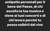 Se non sei disposto a mettere da parte le tue antipatie personali per il bene del Paese, di chi ascolta la tua musica e viene ai tuoi concerti e di chi lavora perché tu possa esibirti dal vivo, non sei un artista. Sei uno stron**.