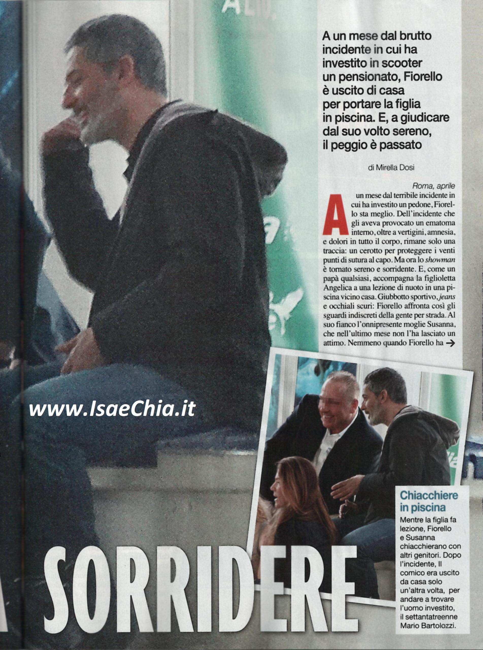 A un mese dall’incidente in cui ha investito un pedone, cadendo dalla moto e riportando vari danni, Fiorello sta meglio. Dopo l’incidente aveva avuto un ematoma interno, vertigini, amnesia e dolori in tutto il corpo, mentre ora rimane solo un cerotto sulla testa per proteggere i 20 punti di sutura. E ora è tornato sorridente. Ecco lo showman mentre accompagna la figlia Angelica a fare lezione di nuoto vicino casa, in abiti sportivi e occhiali scuri. Accanto a lui c’è, come sempre, la moglie Susanna Biondo: “Quest’anno si stanno separando tutti, ma io e Susanna teniamo duro” ha detto lui scherzando. Fiorello è andato a trovare il signor Mario, il pensionato 73enne che ha investito e si è preoccupato delle sue condizioni di salute. Il signore, infatti, ha dichiarato: “Non provo rancore, non voglio speculare su questa storia e penso che chiunque possa commettere una cretinata”. Per quanto riguarda Fiorello, la convalescenza è lunga e ha dovuto cancellare la tournée teatrale Fuori programma. “Voglio tornare a stare bene” ha dichiarato lui.