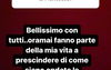 Tuttavia, ha specificato, in successive stories, che con la famiglia di Francesca abbia “un rapporto bellissimo con tutti“. “Ormai fanno parte della mia vita a prescindere da come siano andate le cose…per loro sempre un bene immenso“, ha detto Colombo.