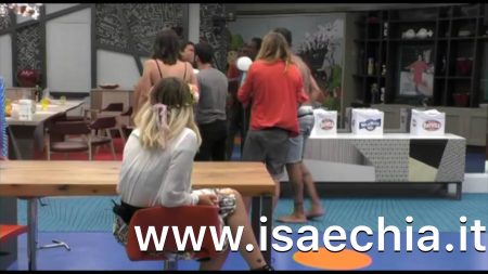 La mora cassiera romana ha preferito non farsi coinvolgere dal dibattito di gruppo che si stava tenendo in cucina, il cui scopo era demonizzare il gesto del tecnico delle lavatrici di TorBella Monaca, che invece si è scusato moltissime volte con la donna più grande di casa, promettendo di non prendersi mai più determinate confidenze, e ha trovato l’appoggio di Angelo Sanzio, che ha visto nel gesto di Coccia Colaiuta soltanto un modo di movimentare la nomination, di cui lui, Danilo e la Bramieri sono i protagonisti, per farla volgere a suo favore.