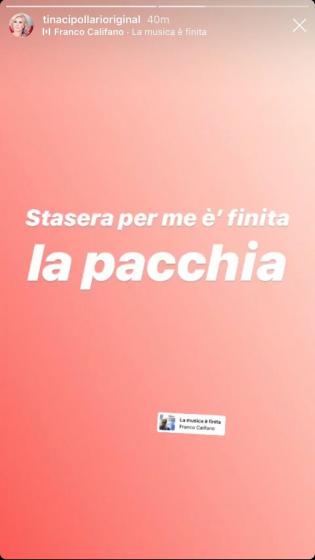 “Stasera per me è finita la pacchia”, ha scritto la bionda ex concorrente di Pechino Express, usando come musica di sottofondo la struggente La Musica è Finita di Franco Califano. Come commenterà l’ormai ex gieffino quando vedrà la storia dell’ex moglie?