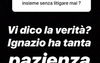 La cosa che mi piace di più di Nachito? A dire la verità mi piace TUTTO, ma quello che mi piace di più è il sorriso che usa tutti i giorni per affrontare la vita. Abbiamo cambiato casa, perché era molto piccola… Adesso abbiamo più spazio, si respira. Tra meno di un mese faremo il prossimo viaggio. Dopo quasi un anno fare l’amore con lui è sempre più bello. La nostra prima notte insieme è stata bella, erano giorni che volevamo stare da soli, senza telecamere e microfoni. Come facciamo a stare insieme senza litigare mai? Ignazio ha tanta pazienza. Per me Ignazio è il mio desiderio più grande.