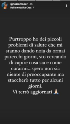 Ignazio Moser è intervenuto su Instagram per comunicare ai suoi follower alcuni suoi problemi di salute che lo hanno portato a decidere di allontanarsi momentaneamente dai social.