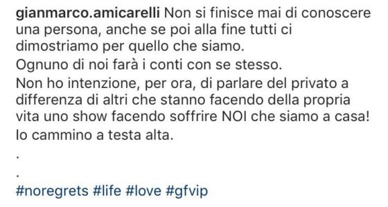 Chi non ha preso bene il comportamento di Jane è ovviamente il fidanzamento Gianmarco, che giovedì nel corso della puntata speciale del reality show le aveva chiesto di portare rispetto a lui, al figlio e a tutta la sua famiglia, e le aveva detto che avrebbero parlato della loro storia d’amore una volta terminata la sua avventura davanti alle telecamere di Canale 5. La volontà del musicista però non è stata per niente rispettata dalla gieffina, e Gianmarco quest’oggi si è espresso per la prima volta in modo chiaro sui social: