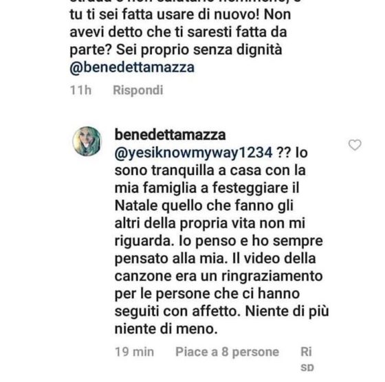 Intanto Benedetta non si è dilungata più di tanto sull’argomento, e tra un regalo da scartare e l’altro ci ha solo tenuto a ribadire che lei si sta godendo le festività in famiglia, e che tutto il resto non la riguarda:
